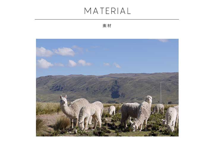 生息するアンデス山脈の厳しい気候に対応するため、その毛には空洞があり空気を溜め込むので、断熱材としての働きがあり、中の熱を保ちます(保温性)。そのため、暖かさに優れています。