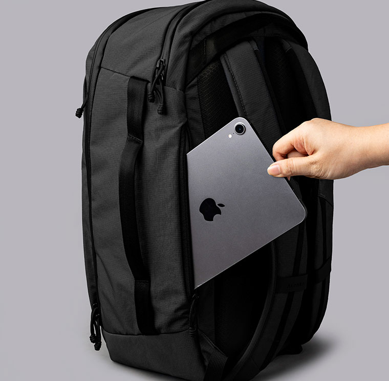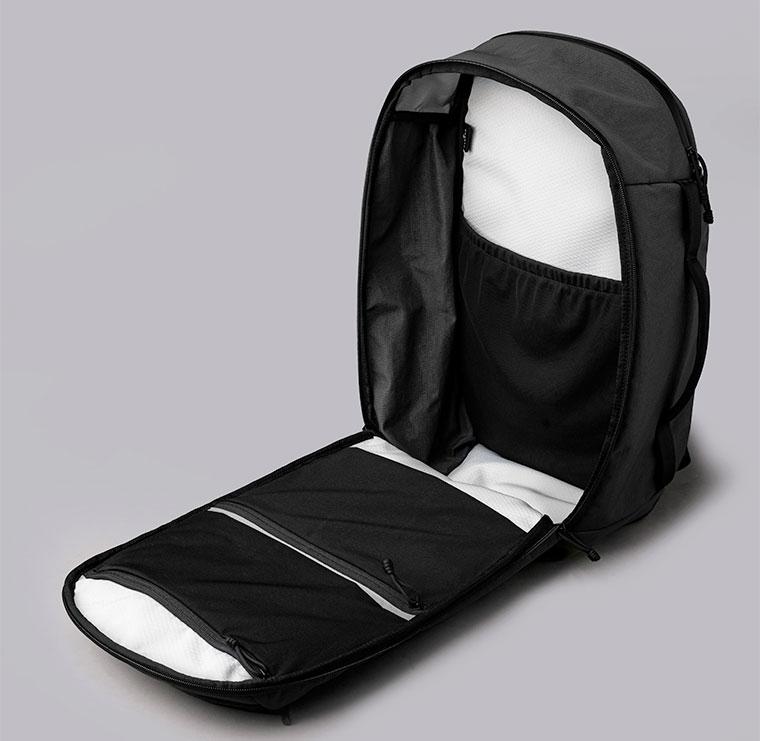 メインコンパートメントはフルオープン仕様で、大容量ながら 細かいポケットの配置で整理して収納できます。
