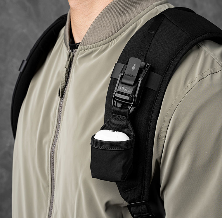 ショルダーベルトには取付ループ付きでHUB アクセサリ (別売) に対応可能。