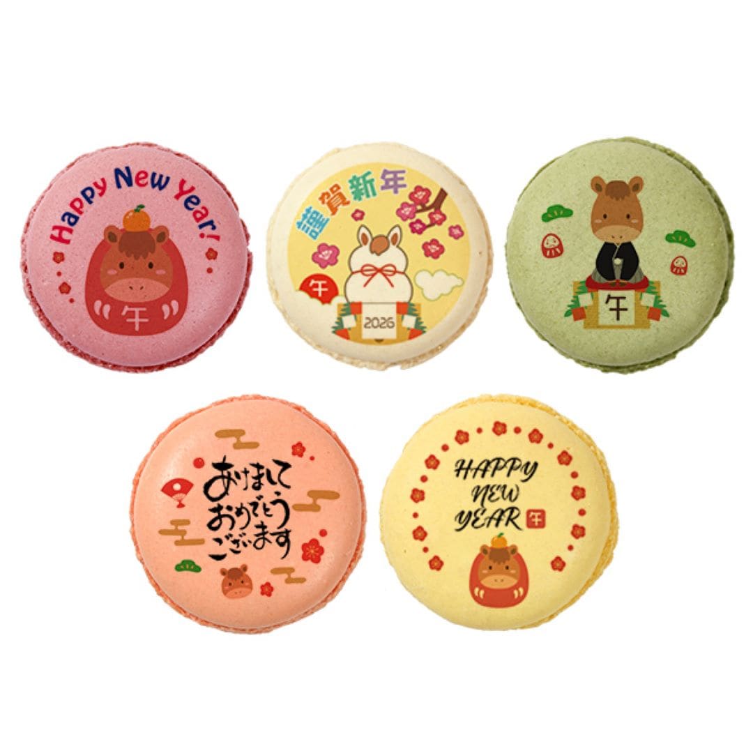 マカロンの表面に可愛いイラストとメッセージがプリントされたマカロンです。