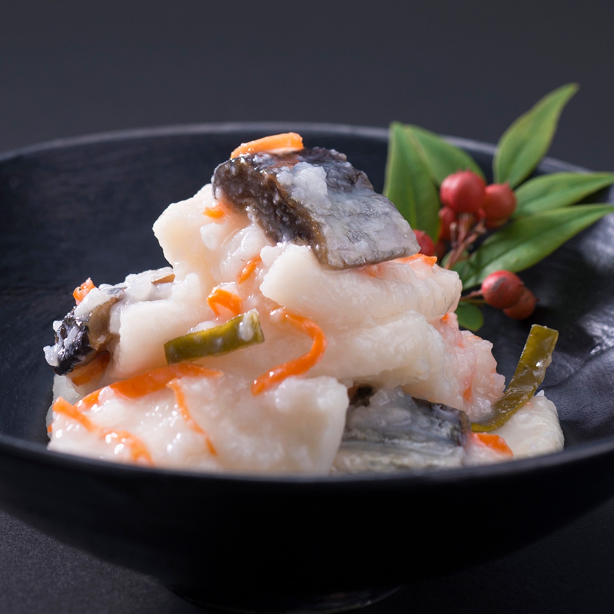 自然の美味しさと伝統の技を生かし藩政時代からの知恵を伝える「かぶら寿し、大根寿し本舗 旭漬物」の大根寿し産直ギフトです。大根寿しは、かるた状に切った石川県産だいこんと、身欠き鰊(ニシン)を、糖化酒麹床で混ぜ合せて、氷温熟成製法で漬け上げます。かぶら寿しと並び、冬の金沢を代表する伝統発酵食品です。