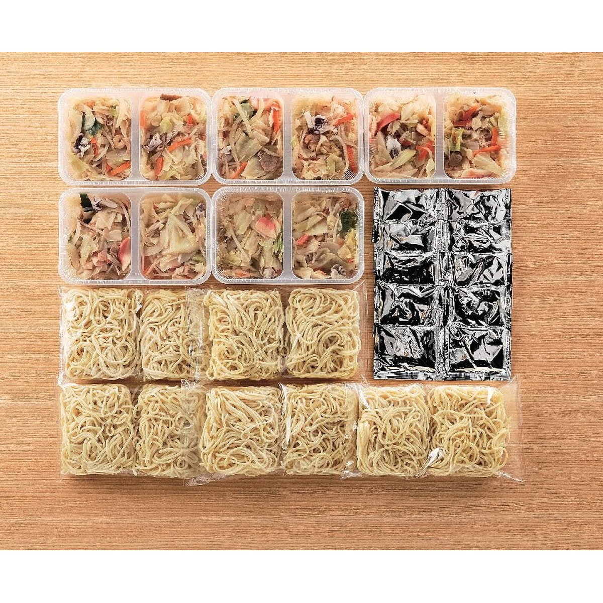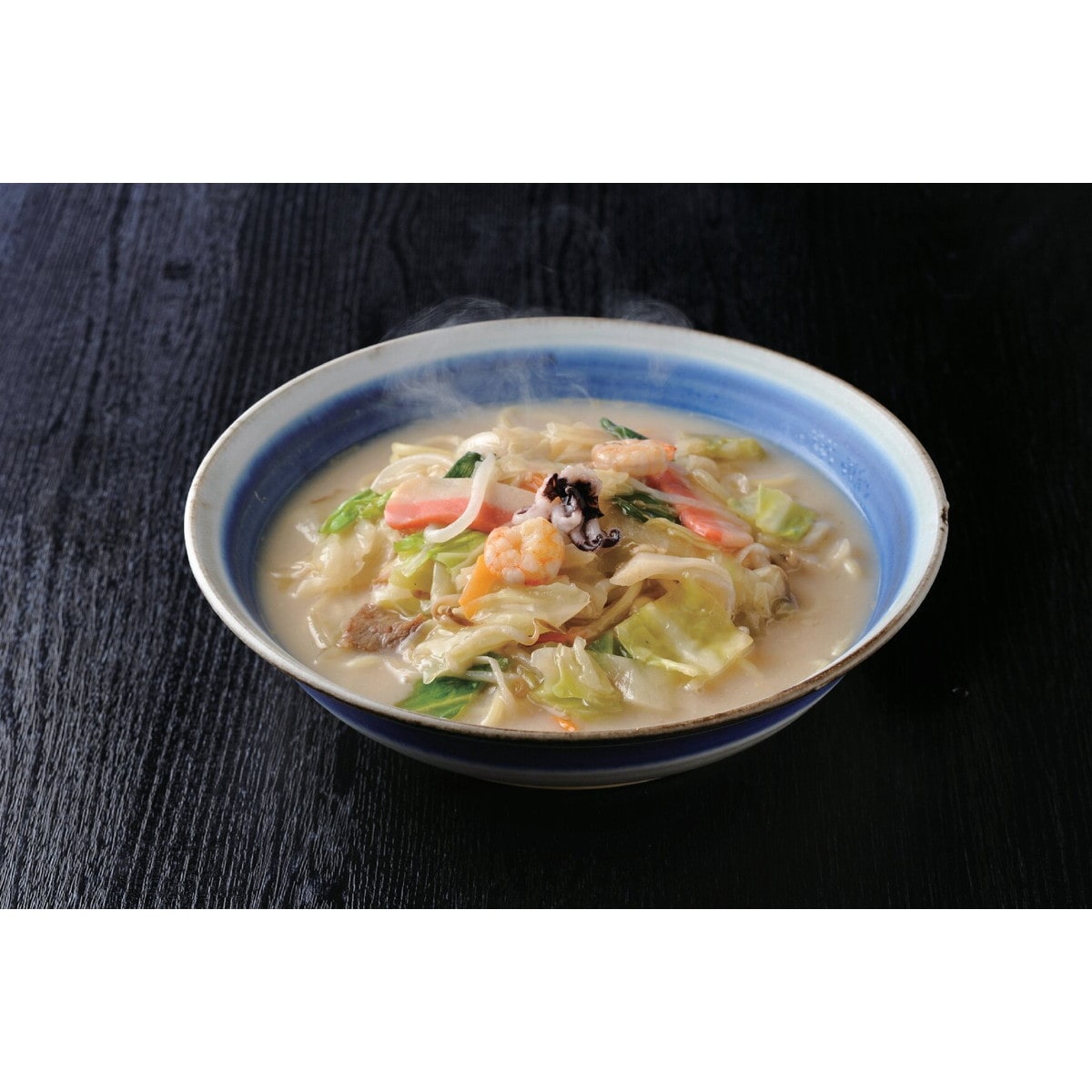 「〈長崎・和泉屋〉長崎ちゃんぽん 」 具材は、国産野菜を使用しています。お鍋ひとつで簡単に調理できます。キャベツや玉ねぎ、人参、エビ、イカ、豚肉などの具材もたっぷりと。お鍋一つで本場の中華を。