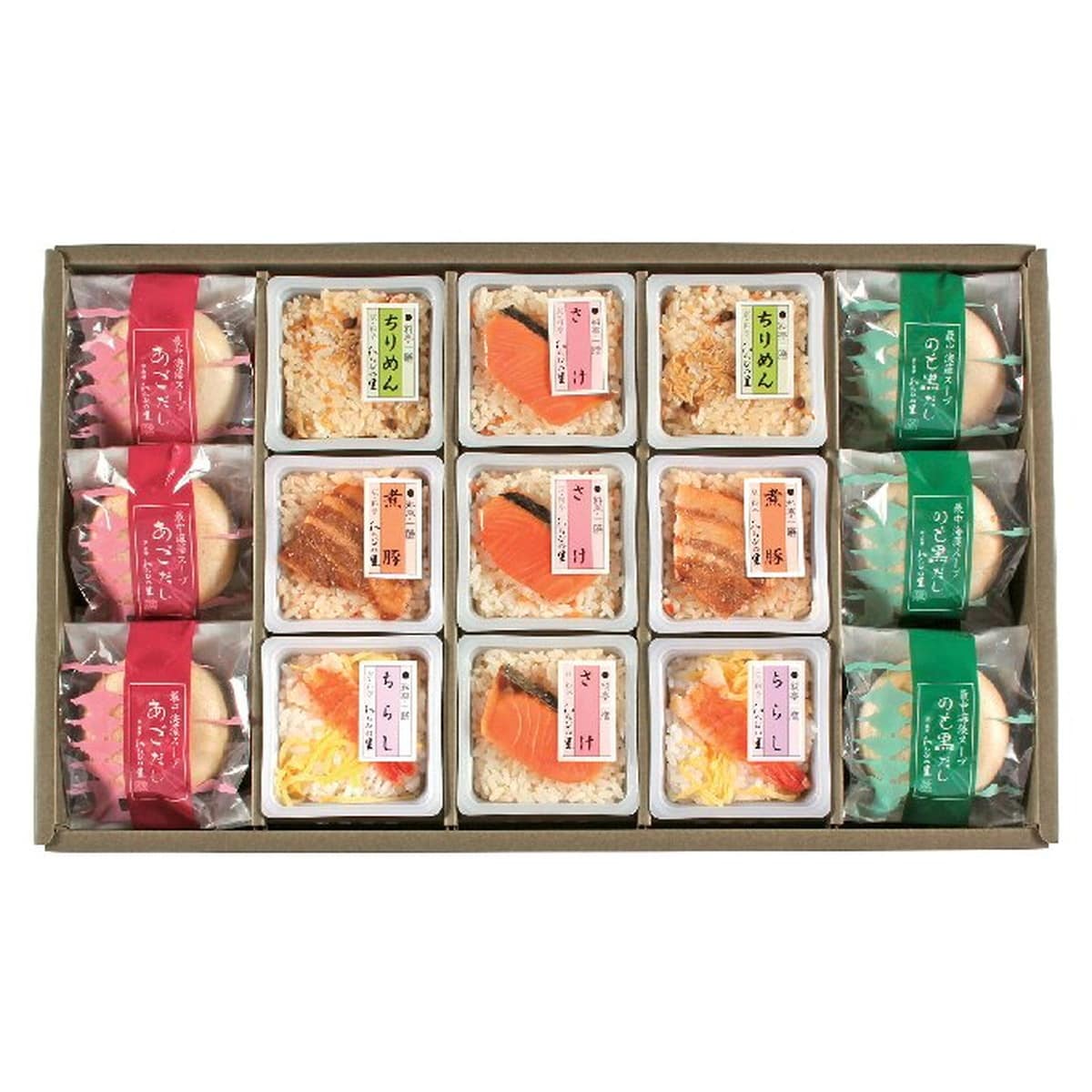 ●数量・内容:鮭ごはん80g×3、煮豚ごはん・ちりめんごはん・ちらし寿司各80g×2、最中海藻スープ(あごだし・のど黒だし各8g×3)