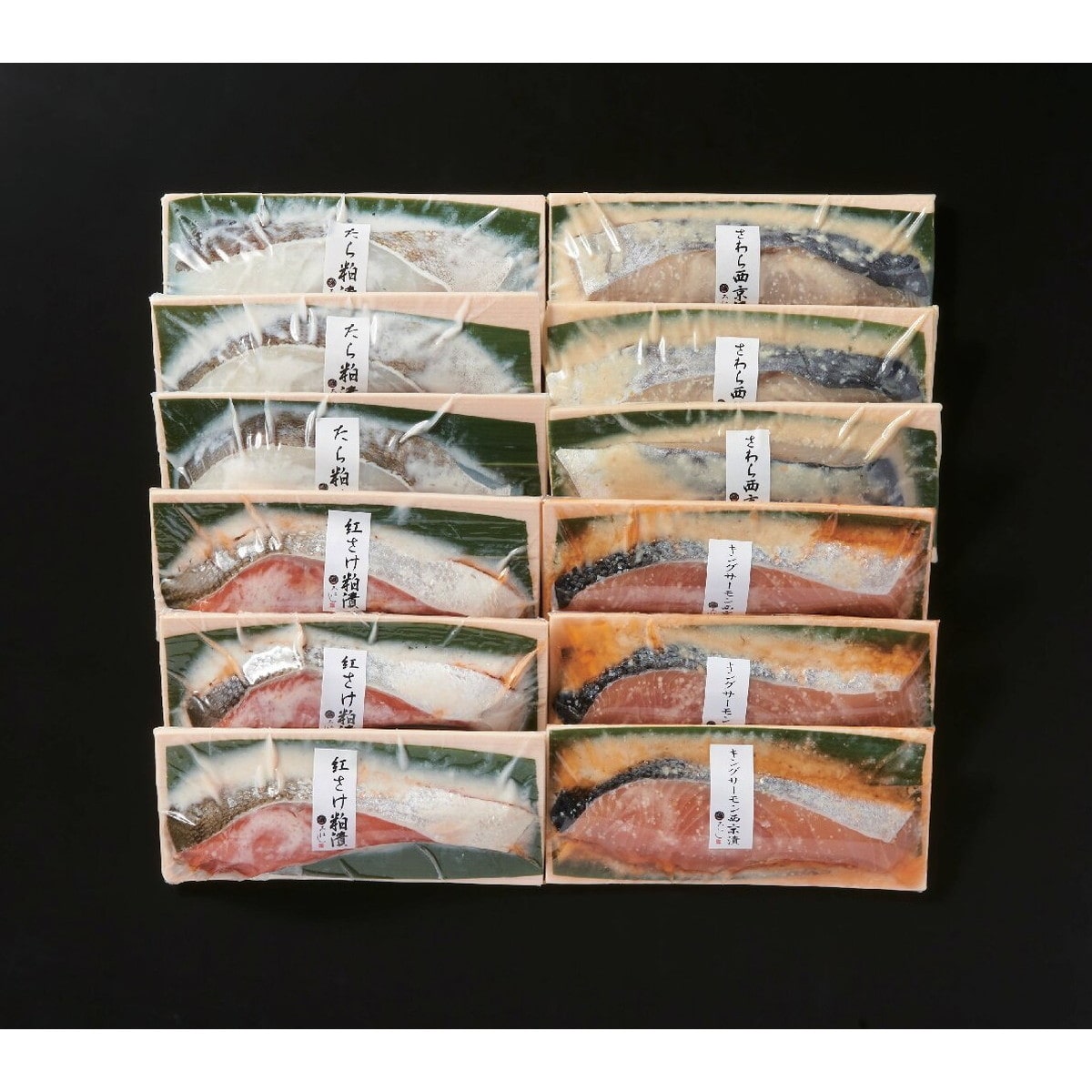 ●数量・内容:さわら西京漬・紅鮭粕漬・キングサーモン西京漬・たら粕漬各90g×3