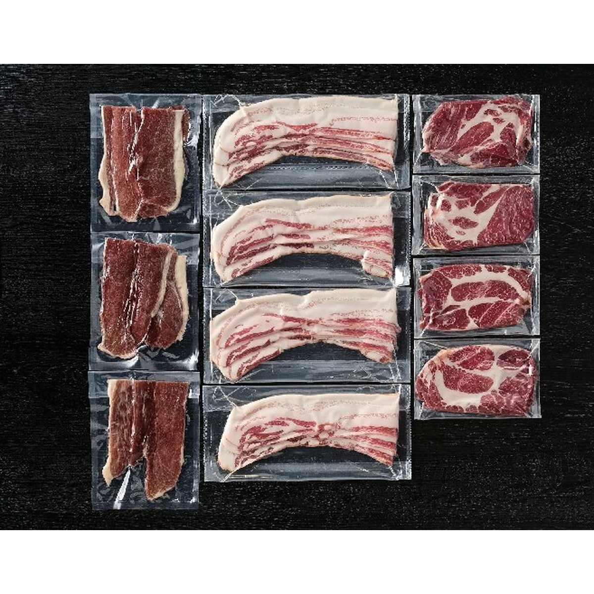 ●数量・内容:肩ロース生ハムスライス60g×4、生ベーコンスライス90g×4、ポークジャーキー50g×3