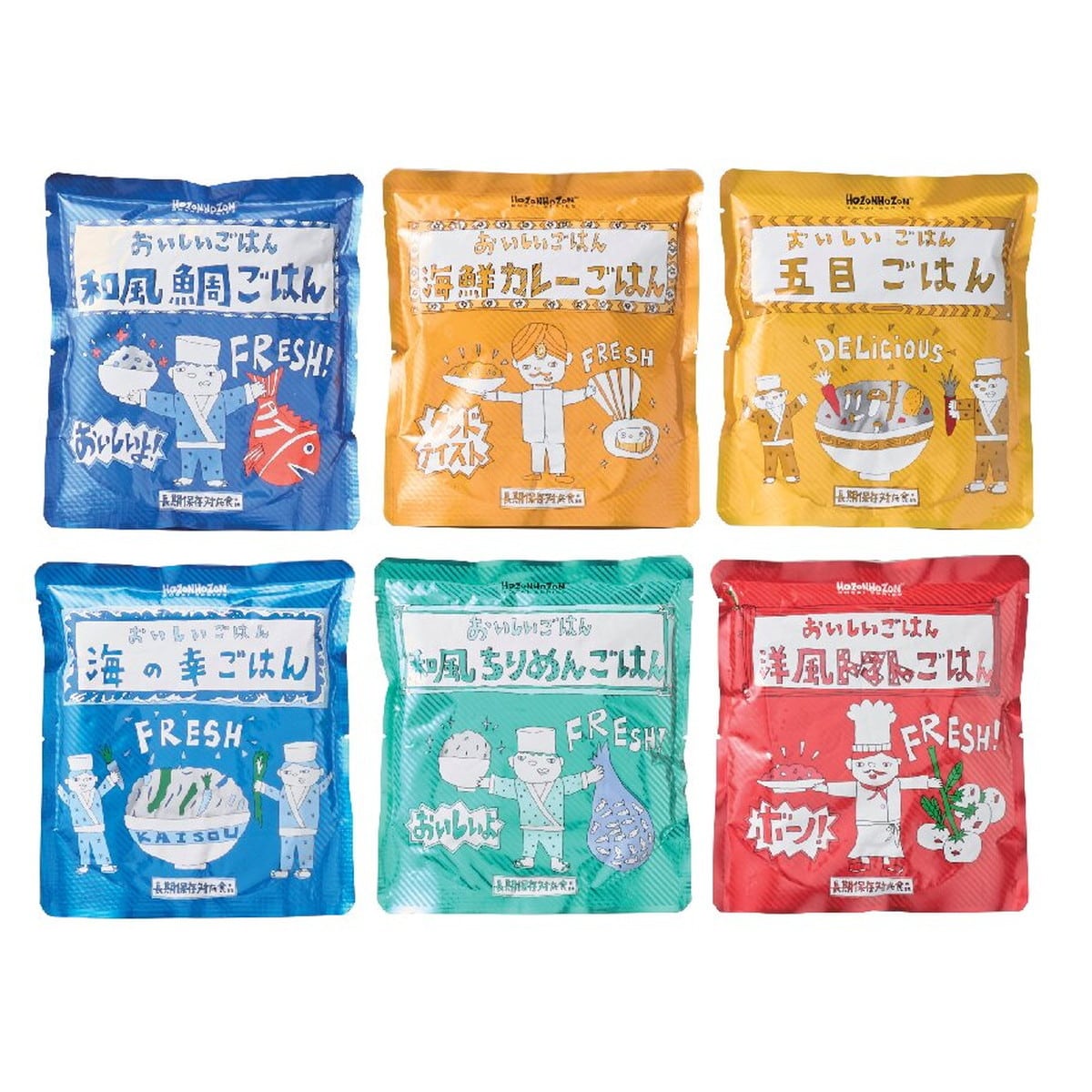 ●数量・内容:和風鯛ごはん・海鮮カレーご飯・五目ごはん・海の幸ごはん・和風ちりめんごはん・洋風トマトごはん各280g