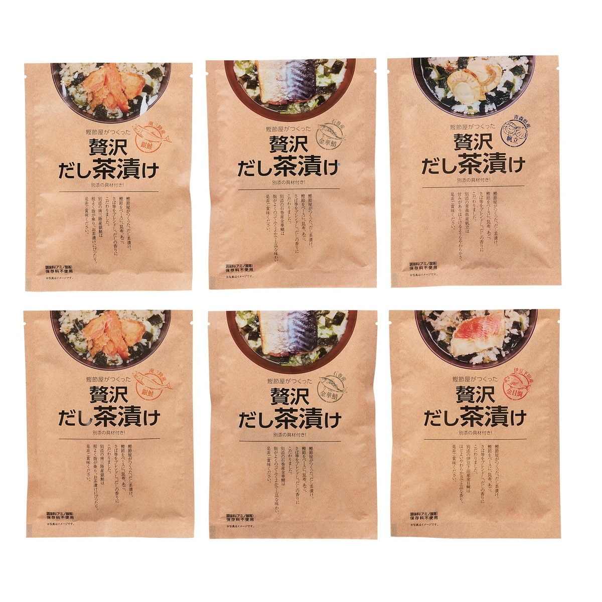●数量・内容:贅沢だし茶漬け(銀鮭・金華鯖×各2、帆立・金目鯛×各1)