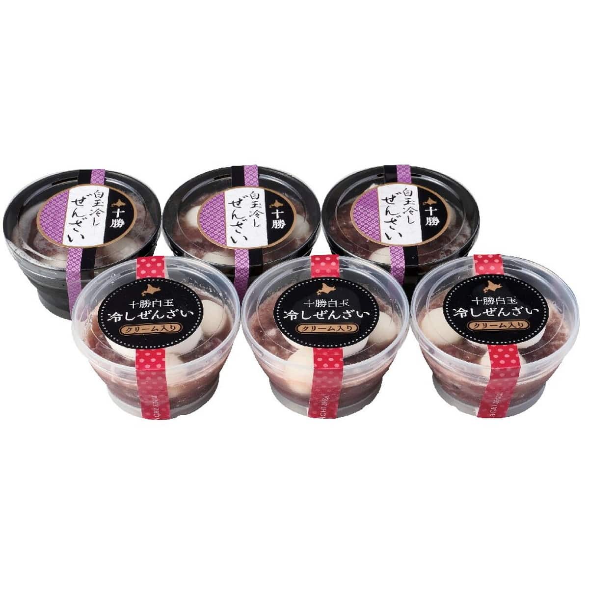 ●数量・内容:十勝白玉冷やしぜんざい120g×3、十勝白玉冷やしぜんざい(クリーム入)120g×3