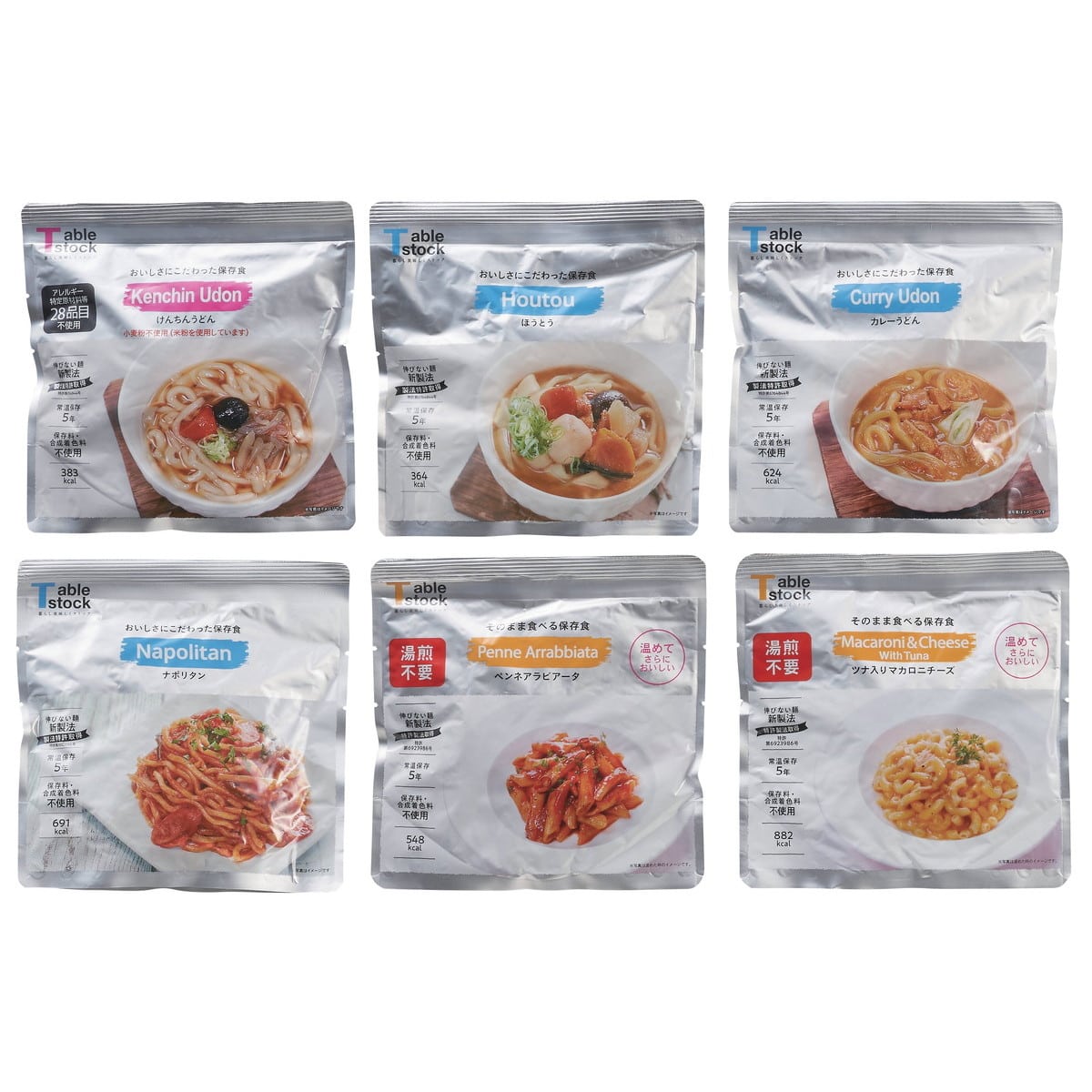 ●数量・内容:けんちんうどん330g、ほうとう340g、カレーうどん320g、ナポリタン320g、ペンネアラビアータ300g、ツナ入マカロニチーズ300g