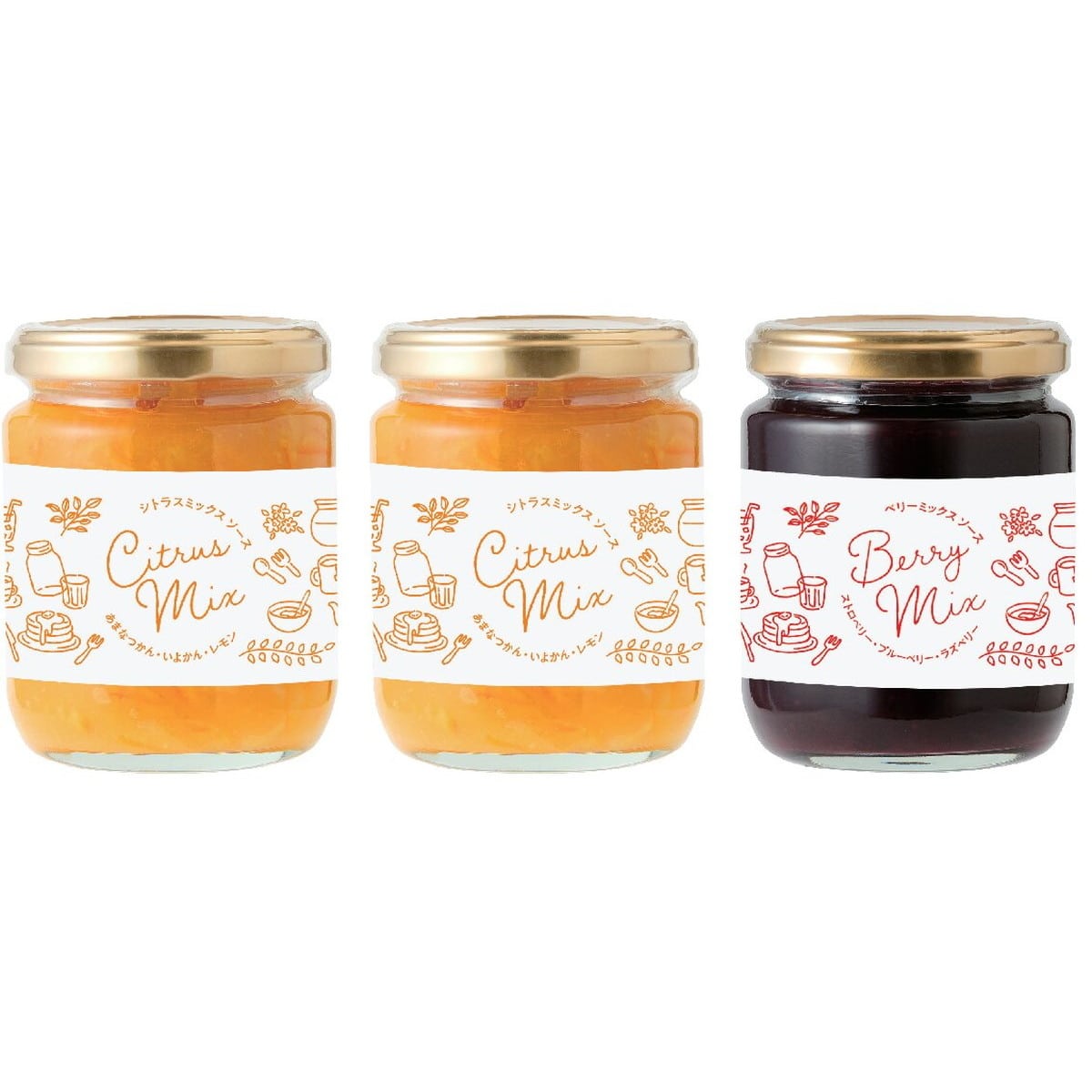 「ごろっと果実のフルーツソースセット」 果実のごろっとした食感が特長のフルーツソースです。ヨーグルトやパンケーキへのトッピングだけでなく、炭酸水やお湯で割って飲んだり様々な方法でお楽しみいただけます。