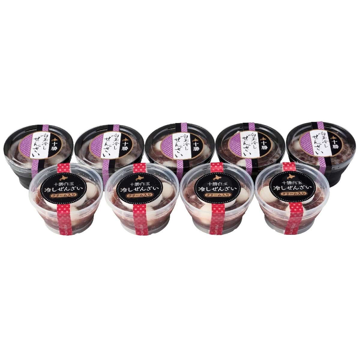 ●数量・内容:十勝白玉冷やしぜんざい120g×5、十勝白玉冷やしぜんざい(クリーム入)120g×4