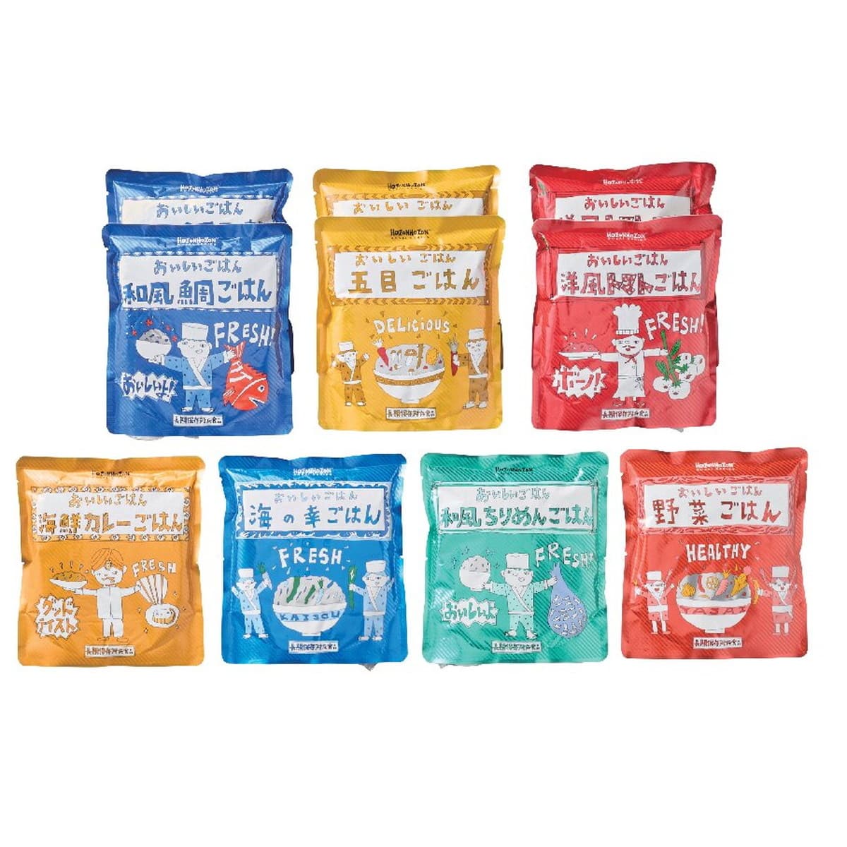 ●数量・内容:和風鯛ごはん・五目ごはん・洋風トマトごはん各280g×2、海鮮カレーごはん・海の幸ごはん・和風ちりめんごはん・野菜ごはん各280g