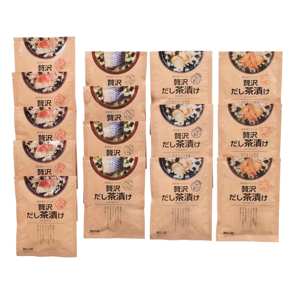 ●数量・内容:贅沢だし茶漬け(金目鯛×5、金華鯖×4、帆立・銀鮭×各3)