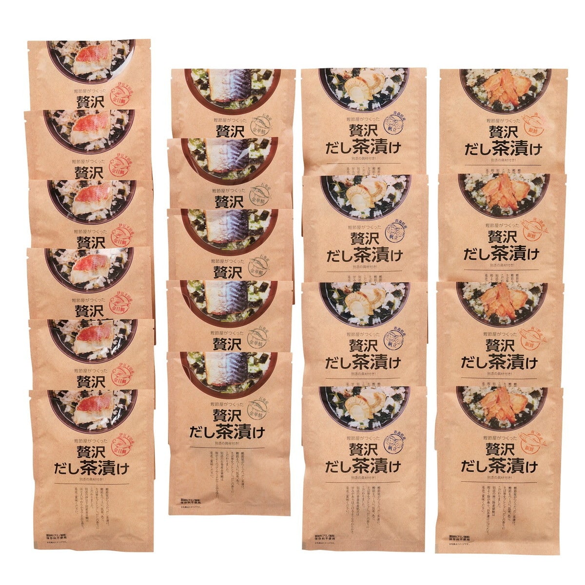●数量・内容:贅沢だし茶漬け(金目鯛×6、金華鯖×5、帆立・銀鮭×各4)