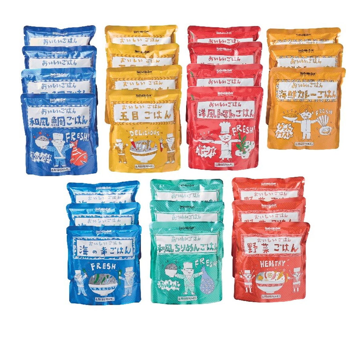 ●数量・内容:和風鯛ごはん・五目ごはん・洋風トマトごはん各280g×4、海鮮カレーごはん・海の幸ごはん・和風ちりめんごはん・野菜ごはん各280g×3