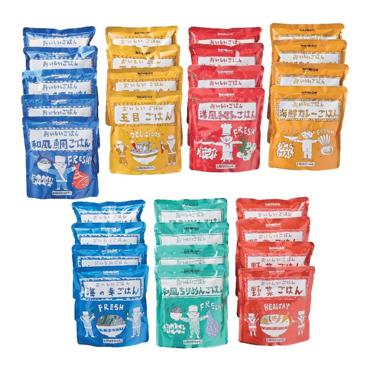 ●数量・内容:和風鯛ごはん280g×5、五目ごはん・洋風トマトごはん・海鮮カレーごはん・海の幸ごはん・和風ちりめんごはん・野菜ごはん各280g×4