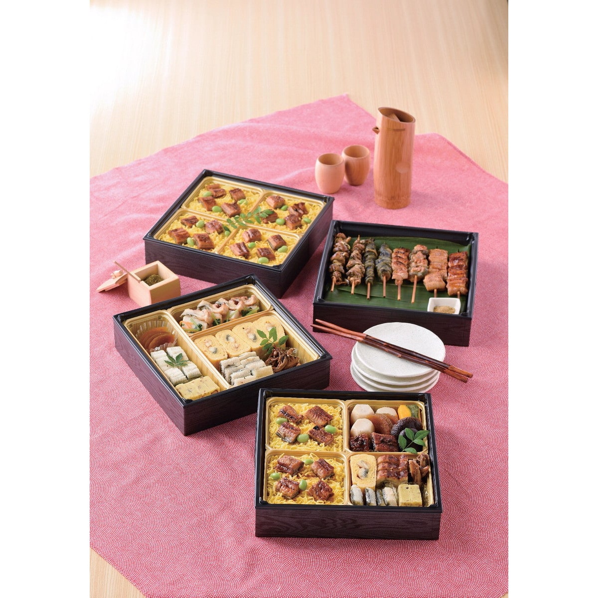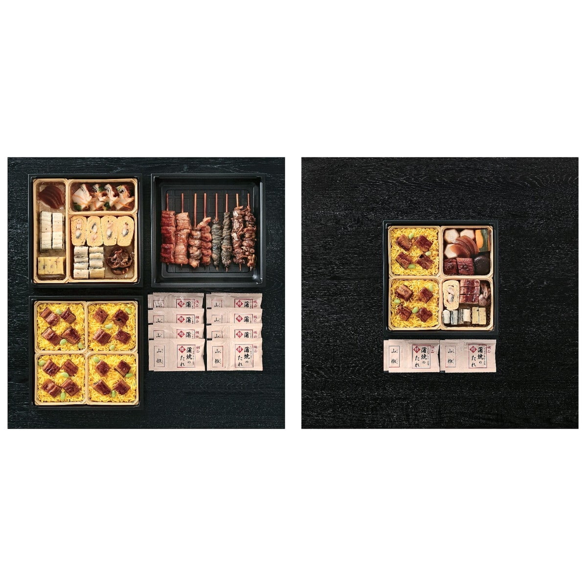 ●数量・内容:鰻懐石三段重4人前(1段目:うなぎ串焼き(串巻き・ひれ串・肝串・短尺各2) 2段目:う巻4切、うなぎ短冊切り(白焼き・塩麹焼き・西京漬け焼き各4切)、うなぎ肝佃煮30g、うなぎ真丈4切、奈良漬4切、丸十大納言4個 3段目:うなぎ錦糸ごはん140g×4、たれ・山椒×8)鰻懐石重2人前(うなぎ錦糸ごはん140g×2、う巻2切、うなぎ短冊切り(塩麹焼き・西京漬け焼き各2切)、うなぎ山椒煮30g、うなぎ肝佃煮20g、うなぎ真丈3切、煮物(里芋・南瓜・椎茸各3)、奈良漬3切、丸十大納言2個、たれ・山椒×2)