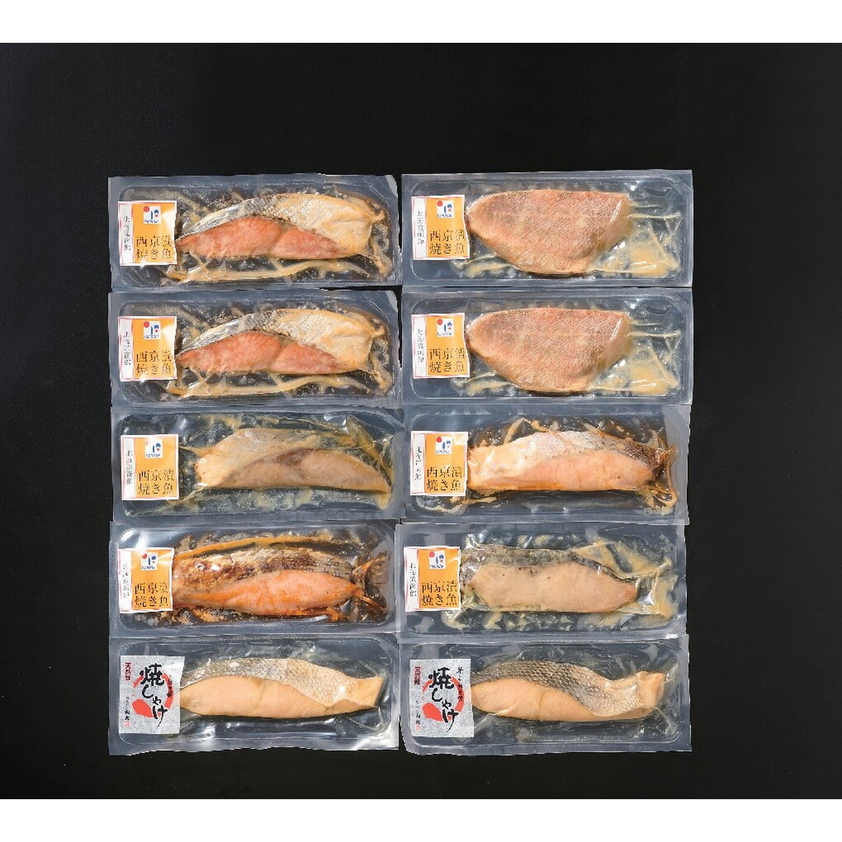 ●数量・内容:西京漬焼魚(紅鮭・赤魚50g×各2、ぶり・トラウトサーモン・銀鮭・銀鱈各50g)、焼鮭50g×2