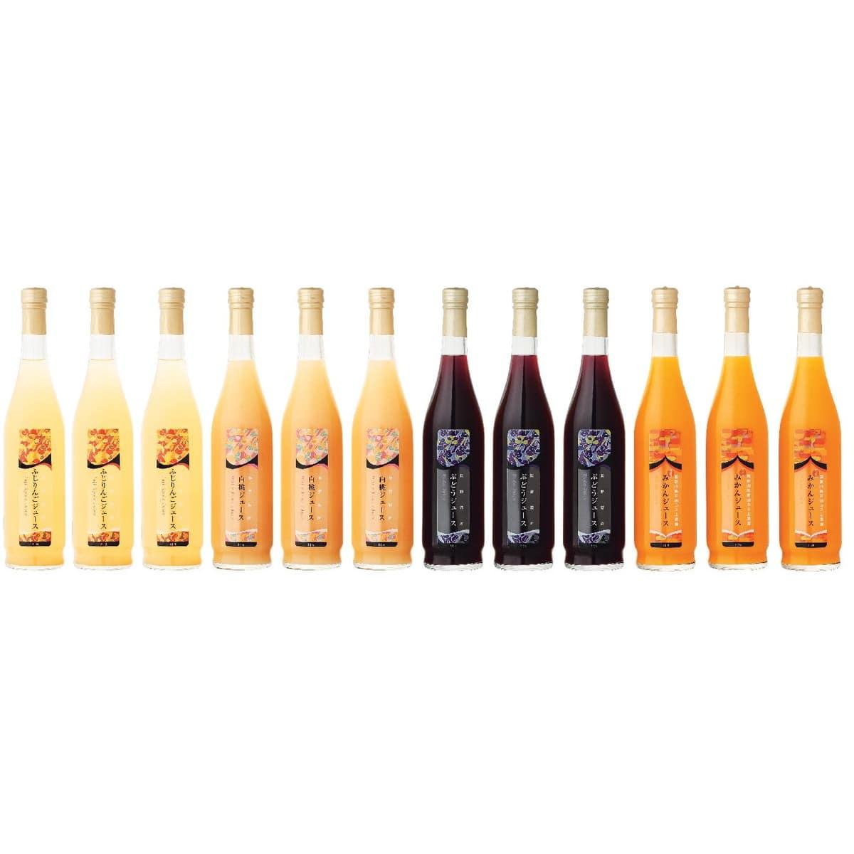●数量・内容:長野県産ふじりんごジュース・長野県産白桃ジュース・長野県産ぶどうジュース・和歌山県産みかんジュース各500ml×3