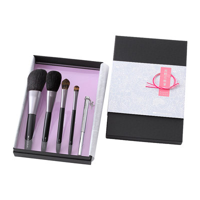 美しいデザインと使い心地のよさを追求したアイテムです。吸い付くような優しい肌あたりが自然派仕上がりに。適材適所に厳選された毛質と穂先形状が完成度の高いメイクを導いてくれます。女性の視点で、贈られたいブラシを厳選して5本セットにしました。セット内容はフェイスブラシ、チークブラシ、アイシャドウブラシ2種類、チャーム×リップブラシの5本セット。機能的でかつ洗練されたデザインのブラシたちはプレゼントするときっと喜んでいただけます。