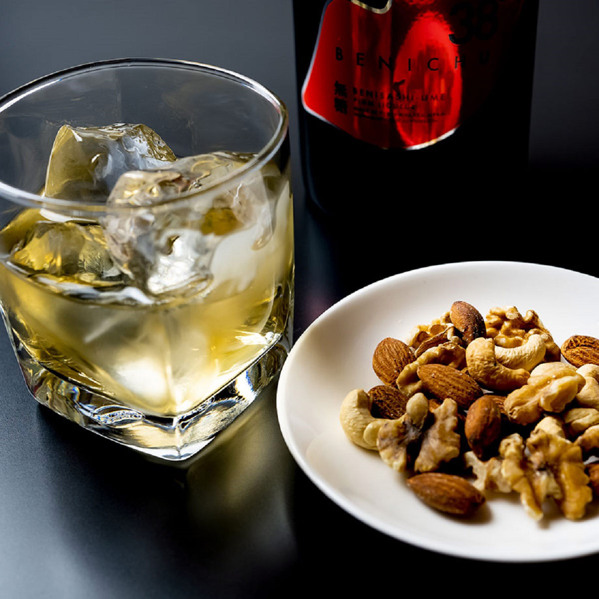 福井県産紅映梅でつくった梅酒「無糖梅酒 BENICHU38°」です。無糖で高濃度のウォッカを使用し、じっくり梅エキスを抽出することで、紅映梅の旨みと酸味、甘みまでも抽出することに成功しました。アルコール度数38度の超ドライな梅酒で適度な酸味と後味の美味しさは、ベニチュウならではの味わいです。