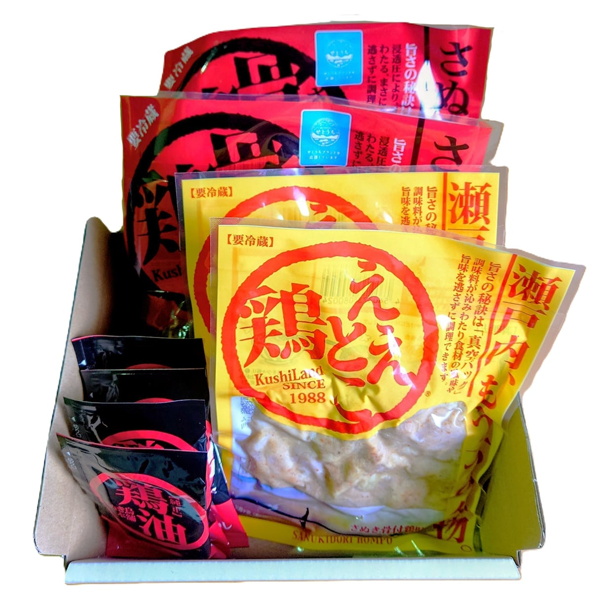 ●内容:骨付鶏240g×2本、ええとこ鶏120g×2袋、チキンオイル25g×4本