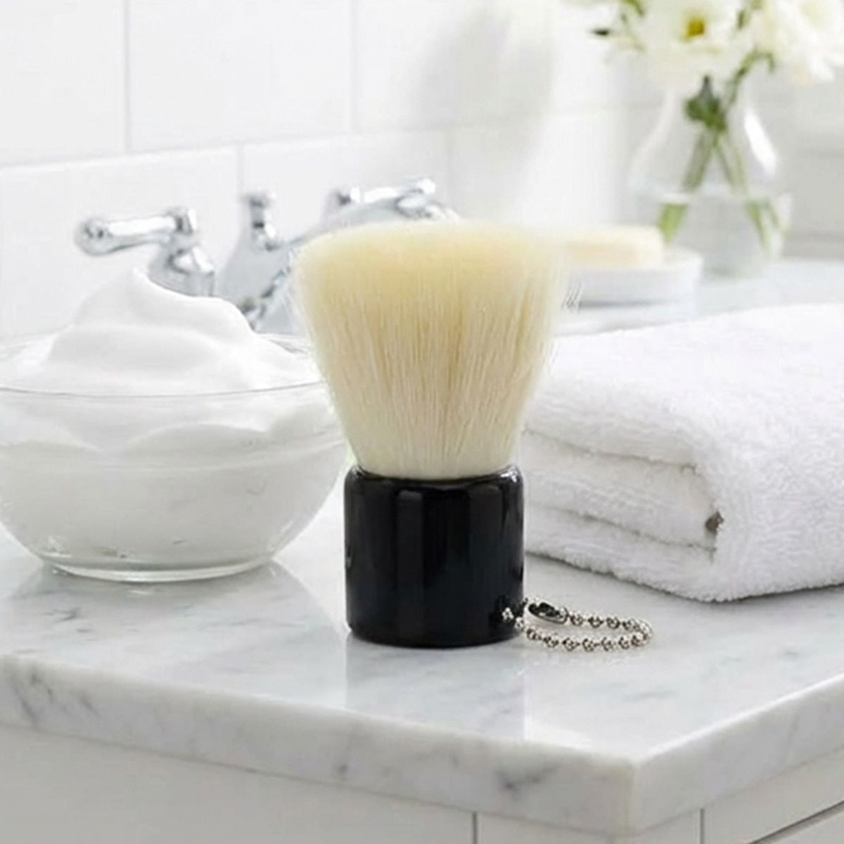 抗菌剤を練り込んだPBT(ポリプチレンテレフタレート)繊維を使用した筆部分は、先端に向けて細くなっていく“テーパー状”の毛先にウェーブをつけた事により、植毛部分に空気が入り、肌に密着するキメ細かい泡をつくります。