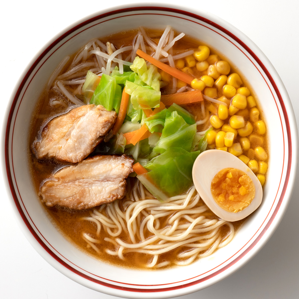 「ご当地 札幌 味噌ラーメン」はシンプルなのに濃厚な味噌ラーメンです。味噌をベースとした、コクのあるこってりと濃厚なスープをお楽しみいただけます。スープに味がしっかりとついているため、コーン、もやし、きゃべつといったさまざまな野菜とも相性が良いです。バターをトッピングするのもオススメです。麺は厳選した良質な小麦を使用し、もっちりと喉越し良く仕上げています。