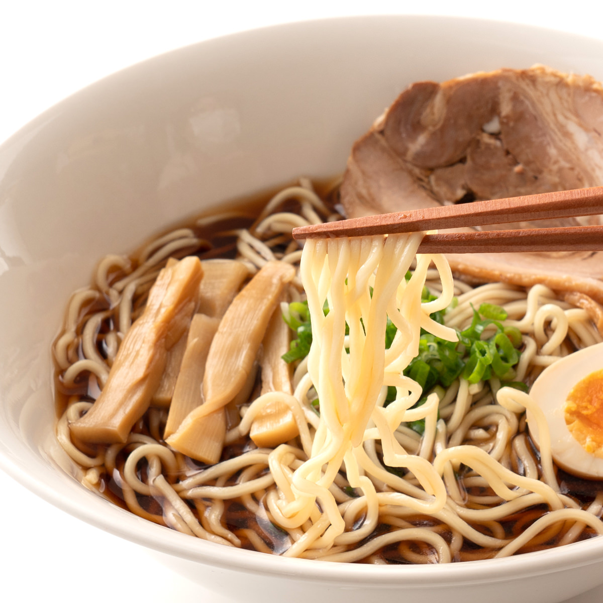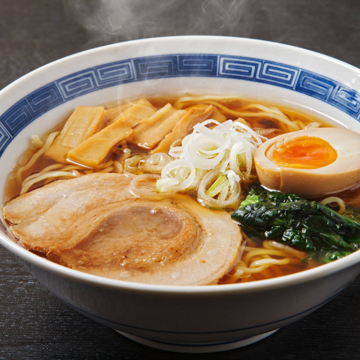 「ご当地 旭川 醤油ラーメン」はすっきりとした上品な旨味の醤油ラーメンです。本醸造醤油をベースに鶏の旨み、玉ねぎの甘み、にんにくのコクを加えました。ポーク、チキン、野菜で煮出した芳醇な香味油が隠し味です。麺は厳選した良質な小麦を使用し、もっちりと喉越し良く仕上げています。