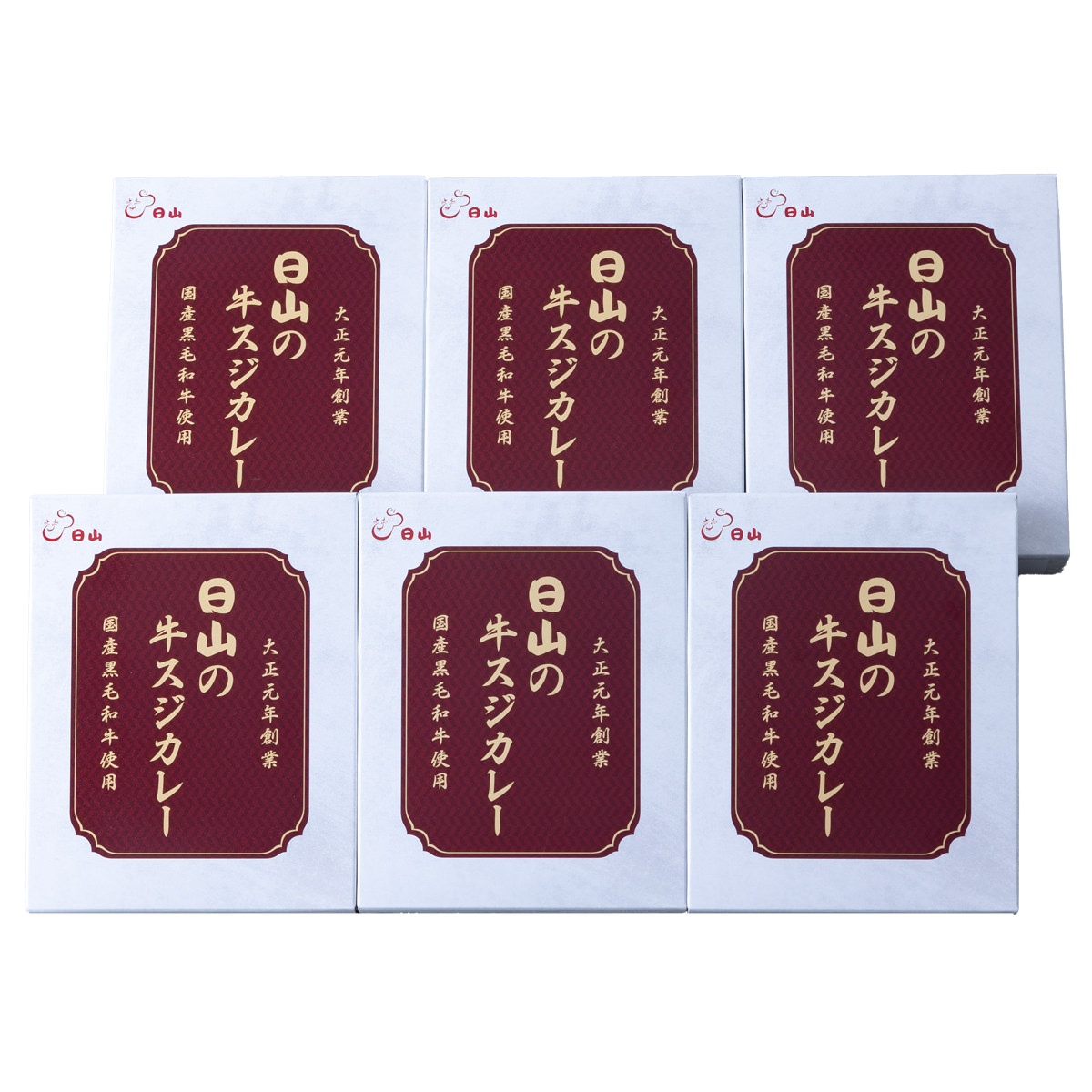 ※こちらは「日山の牛スジカレー」(6食セット)です。