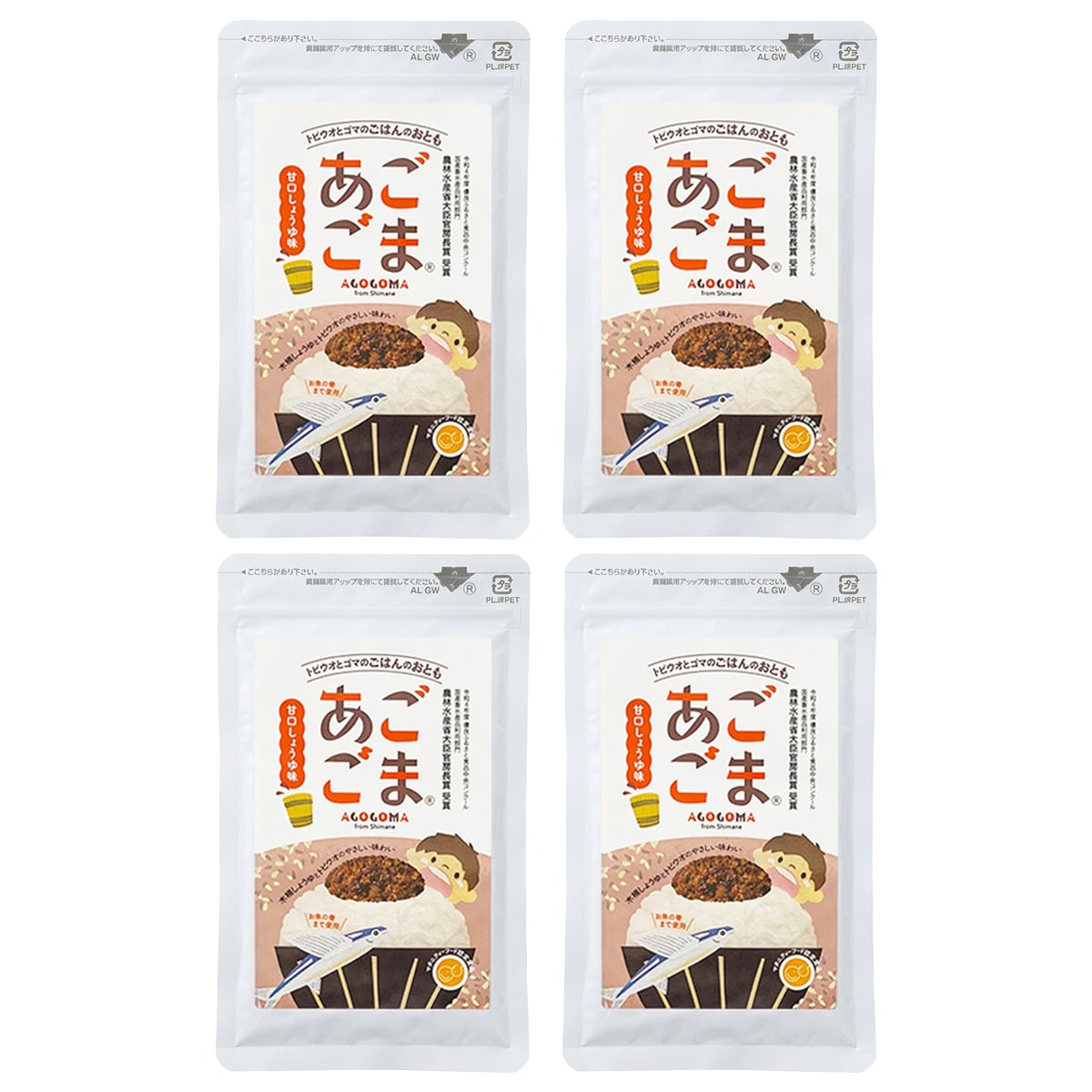「あごごま 甘口醤油味」は島根県産のあご(トビウオ)とゴマが主原料のソフトふりかけです。ご飯のお供に、サラダや麺類のトッピングなどにもおすすめです。トビウオの骨まで粉砕して使用し、大さじ1杯につきカルシウム72mgを含有(東京都食品分析センター調べ)。マタニティフード認定商品です。お子さまからご年配の方までお楽しみいただけます。令和4年度 優良ふるさと食品中央コンクール「農林水産省大臣官房長賞」を受賞しました。