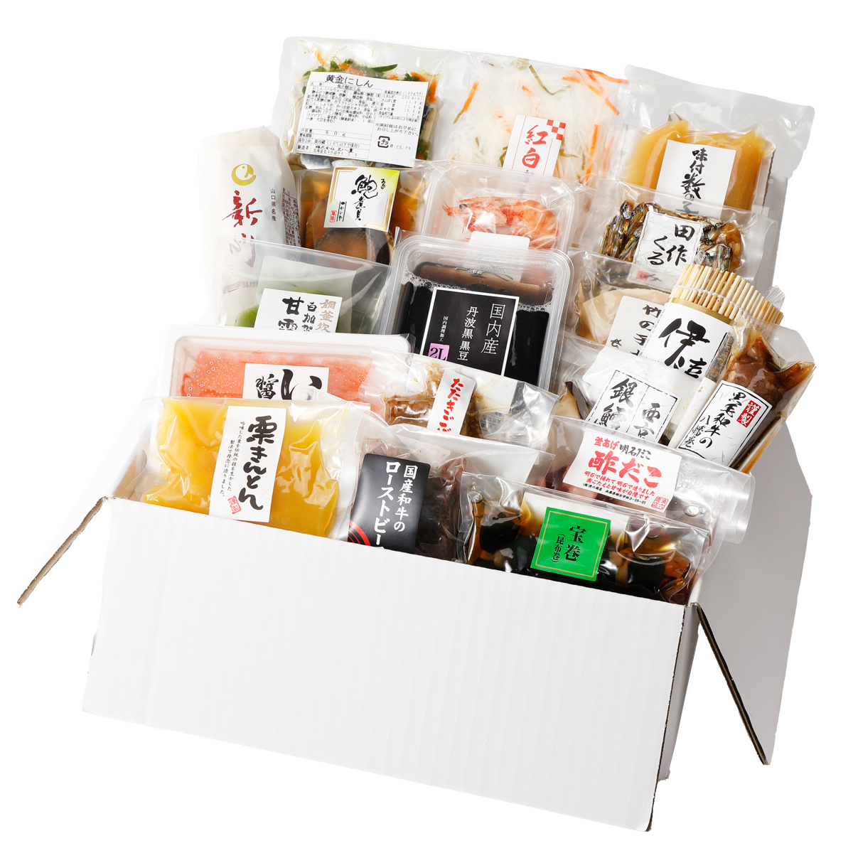 ※お重は付きません。19品各品の個包装パックを箱に詰めて冷蔵便でお届けします。