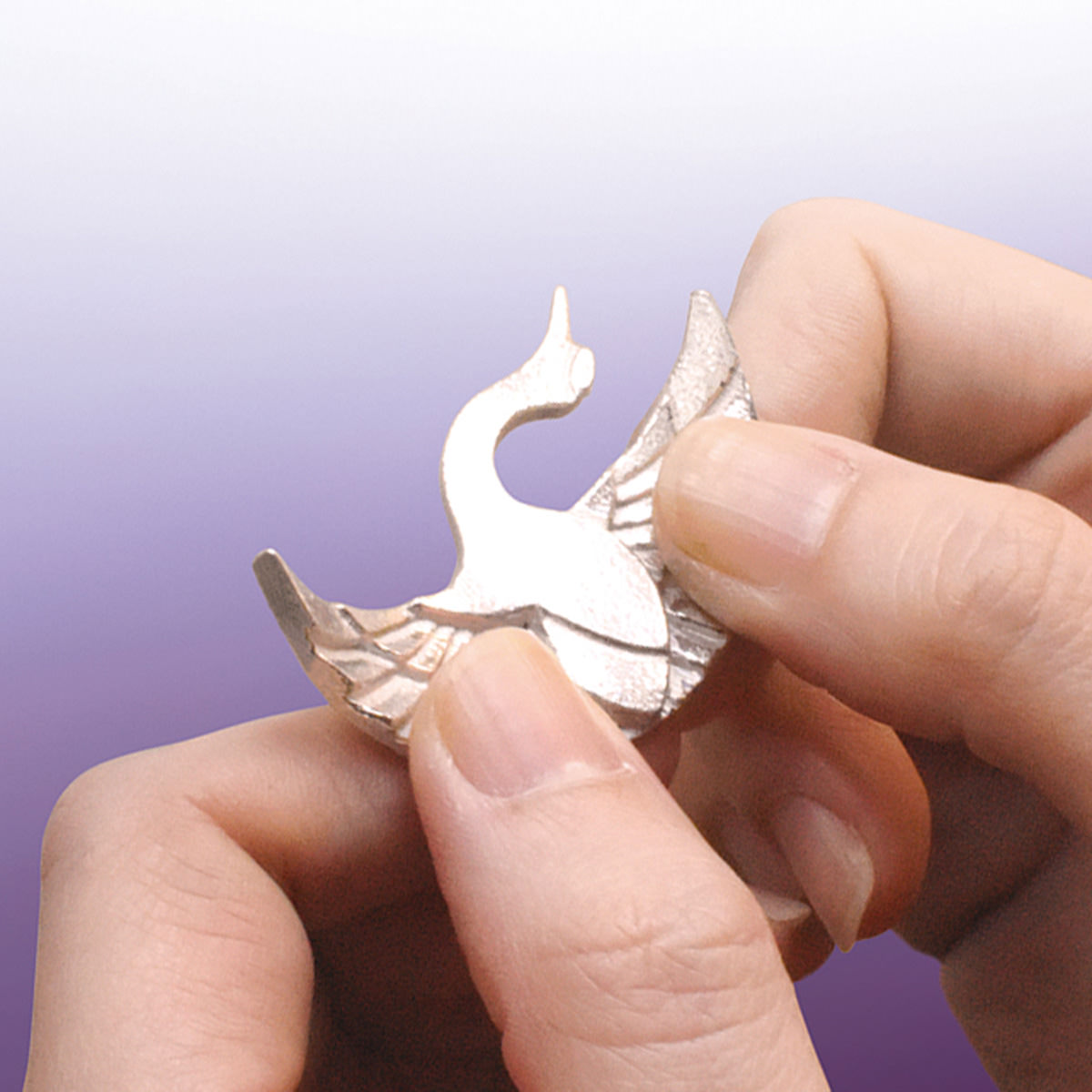 錫は酸化しにくく、水の中に浸すと錫イオンによって水が腐りにくくなりますので、箸置き以外の使い方として、水盤や透明な花器の中に飾れば、活けたお花を長持ちさせることができます。また、首と翼との隙間を利用し、メッセージカードや席札を立てることができます。大切な方とのコミュニケーションや、お祝いの席の演出にご活用いただけます。