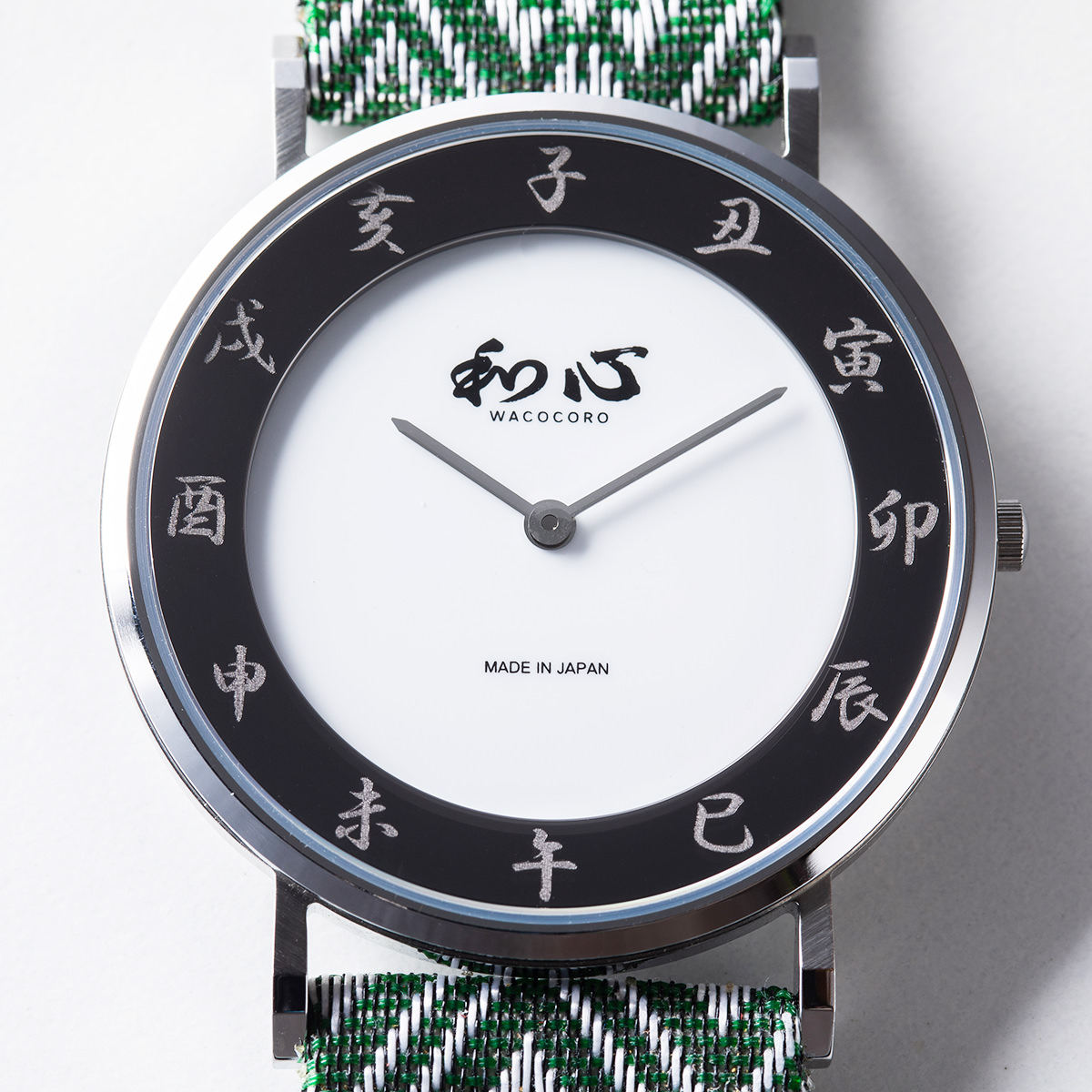 『和心 畳-TATAMI- 畳縁をバンドに採用した薄型の日本製腕時計(無地 白)WA-005B-C』畳縁をバンドにした日本製腕時計です。創業50年超えの和工が日本の伝統と最先端技術を融合しました。特徴の一つとなるバンドには岡山の老舗畳縁メーカー「高田織物」さんの畳縁を使用し、国内の工房で一つ一つ手作りでバンドに仕上げました。ムーブメントを始め、多くの部品を国内で製造、国内で組みあげた他にはない腕時計となっています。桐箱に入れてのお届けとなりますので、ギフトにも最適です。防水/5気圧防水、クオーツモデル。