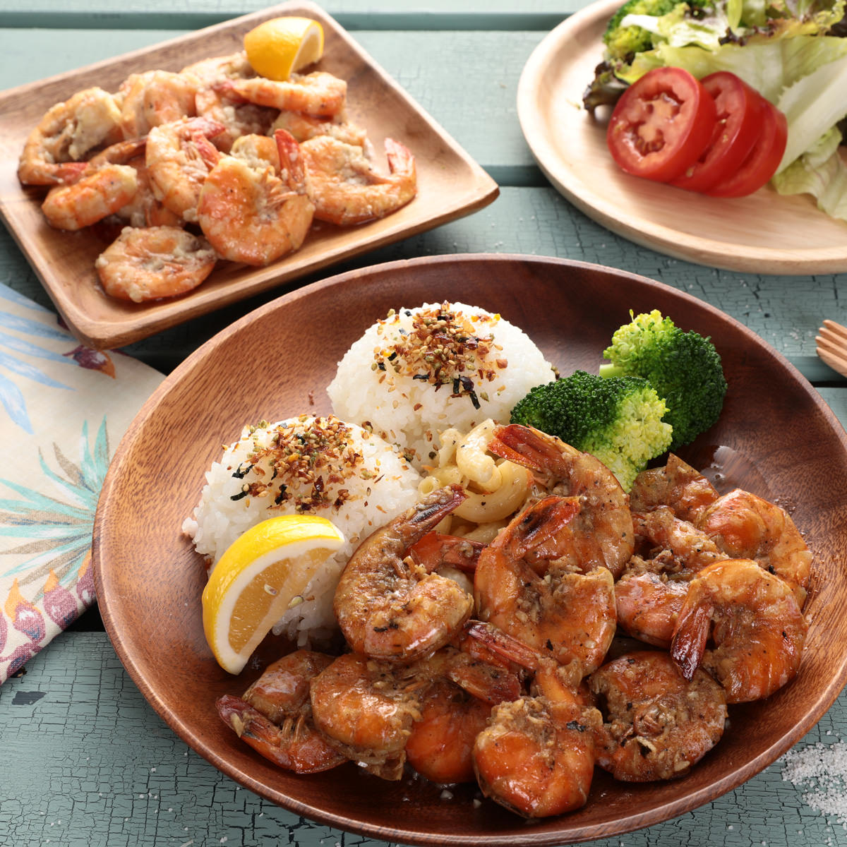 「バーベキューセット アメリカン3種詰合せ」です。アメリカの代表料理であるバーベキューリブと、ハワイで人気のシュリンプ2種(ガーリックシュリンプ・ケイジャンガーリックシュリンプ)のお得な3種類セットです。