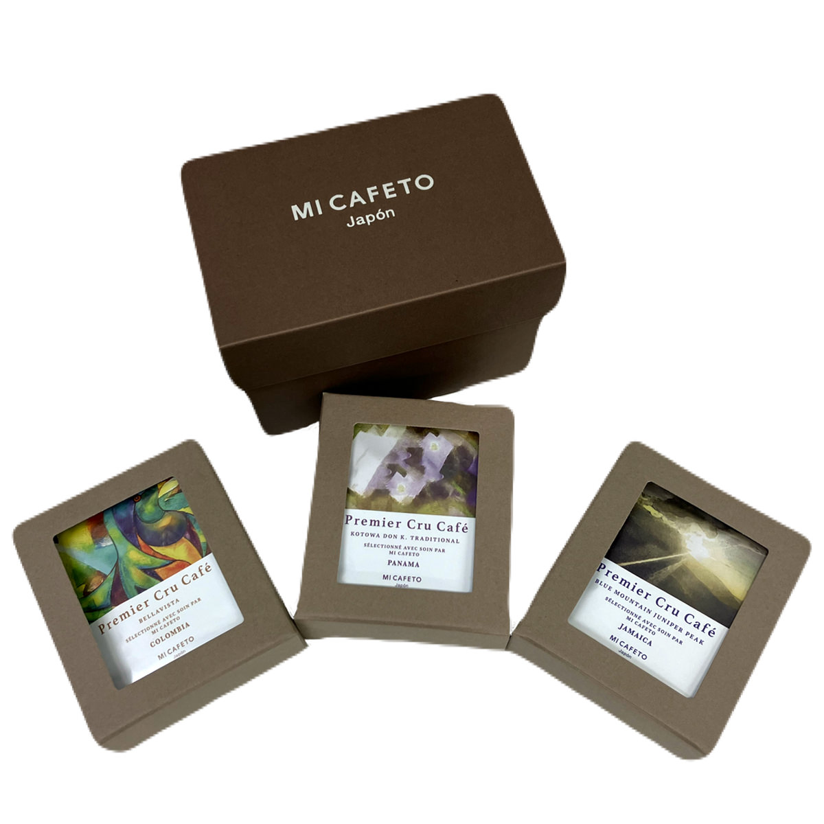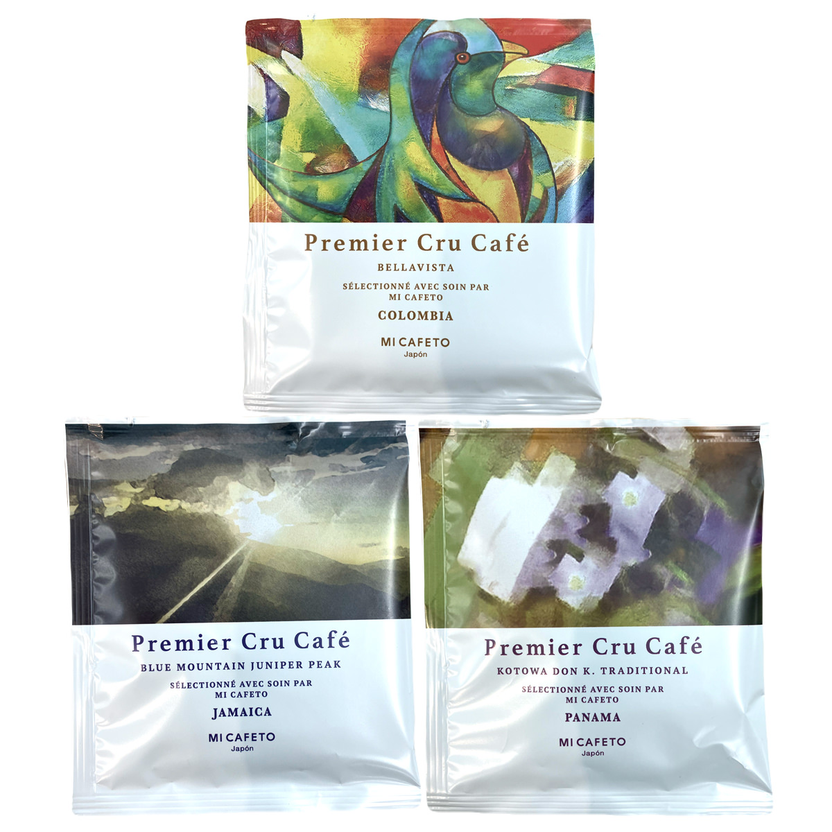 「プルミエ クリュ カフェ ドリップバッグ 飲み比べ」は、シャンパンボトルで販売しているミカフェートのコーヒーブランド「プルミエクリュカフェ」より、好評の銘柄を選定したドリップバッグコーヒーの詰め合わせです。お湯を注ぐだけで、手軽にミカフェートのこだわりのコーヒーをお楽しみいただけます。