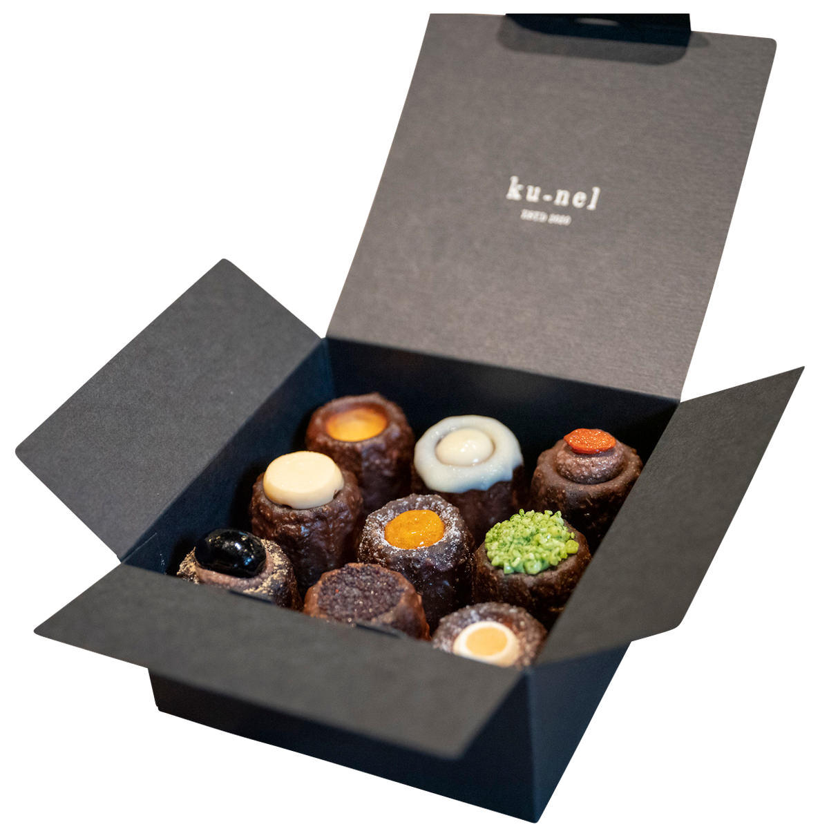 丹波の卵、牛乳でつくったちょっとリッチなプレーン味の「丹波のたまご」、丹波黒豆のきなこと甘露煮でつくった香ばしい一粒の「黒豆きなこ」など京都の味わいをカヌレでお楽しみください。