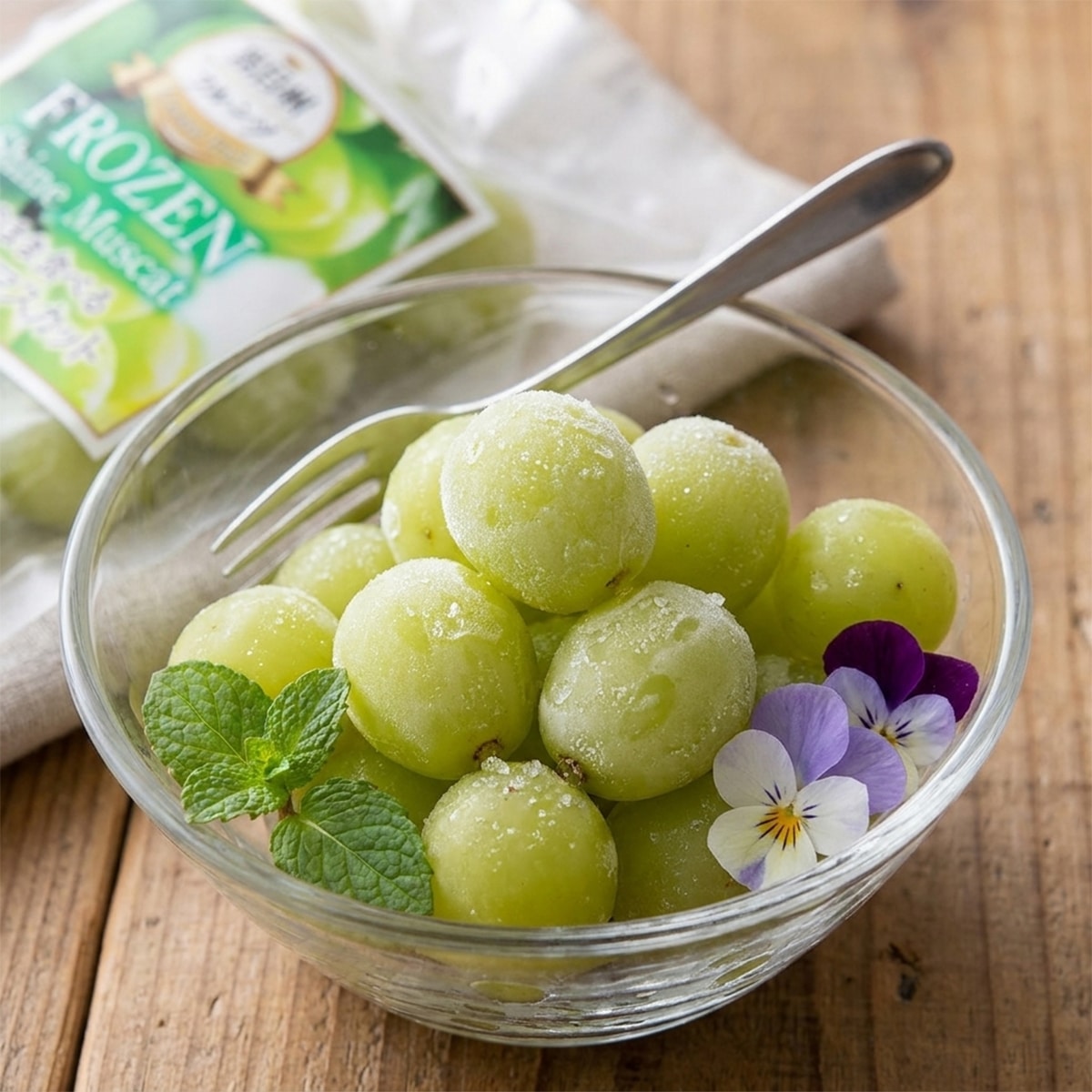 「そのまま食べるシャインマスカット」は、南信州産のシャインマスカットを房から外し、殺菌洗浄して急速冷凍機でバラ凍結にしてありますので、安心してそのままお召し上がりいただけます。シャーベットの様な歯ごたえと口に入れた瞬間一気に広がるさわやかのシャインマスカットの甘みがお楽しみいただけます。サイダーや焼酎に入れたり、ゼリーやフルーツポンチ等にもお使いいただける冷凍フルーツです。
