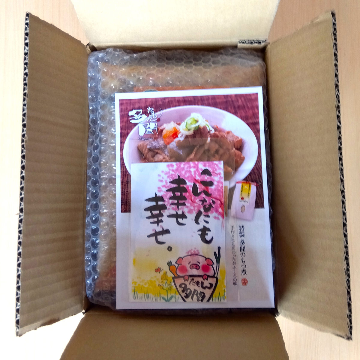 ●原材料:豚もつ(新潟県産)、大根、ごぼう、こんにゃく、にんじん、にんにく、しょうが、味噌、しょうゆ、/調味料(アミノ酸)、(一部に豚肉、小麦、大豆を含む)/水酸化カルシウム