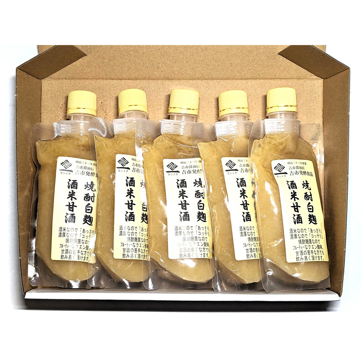 「吉市醤油店 焼酎白麹 酒米甘酒」は、原材料と麹菌の特徴を生かしたノンアルコールの麹甘酒です。石川県白山市に蔵を構え、明治33年より醸造を続けている発酵のプロ「吉市醤油店」が、吉市発酵食品と称して米で製麹を始め、高濃度・完全無添加・完全国産原材料・糖化技術にこだわって製造しました。
