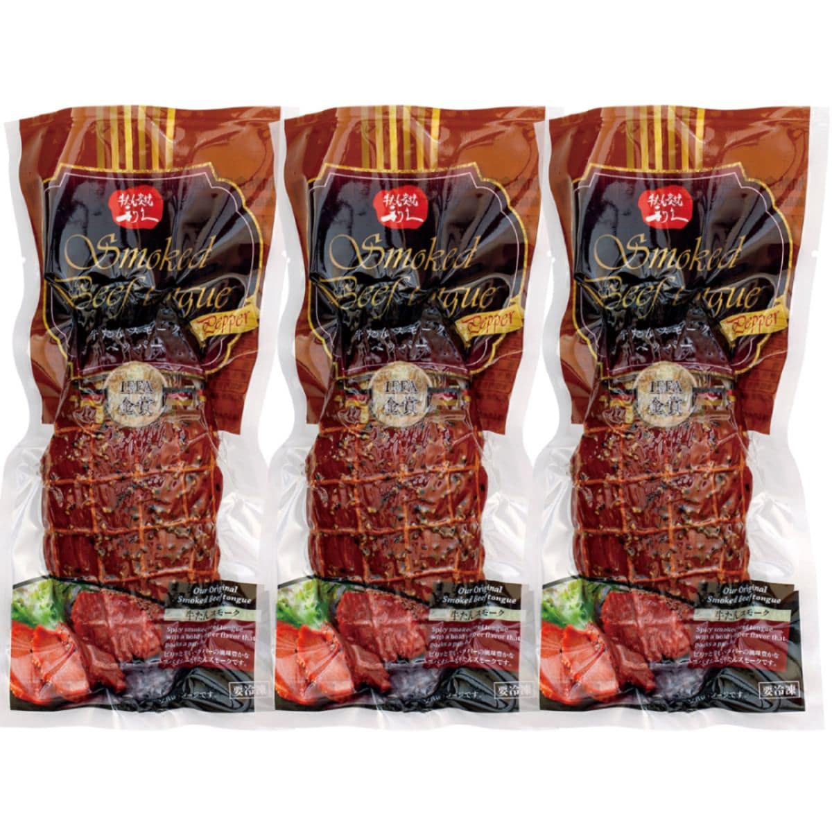 ●原材料:牛舌(オーストリア産)、食塩、糖類(ブドウ糖、砂糖、水あめ)、ブラックペッパー/乳酸ナトリウム、リン酸塩(Na)、酸化防止剤(V.C)、調味料(アミノ酸)、発色剤(亜硝酸Na)、香辛料抽出物、(一部に牛肉を含む)