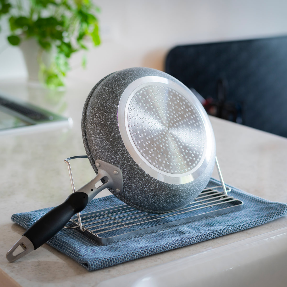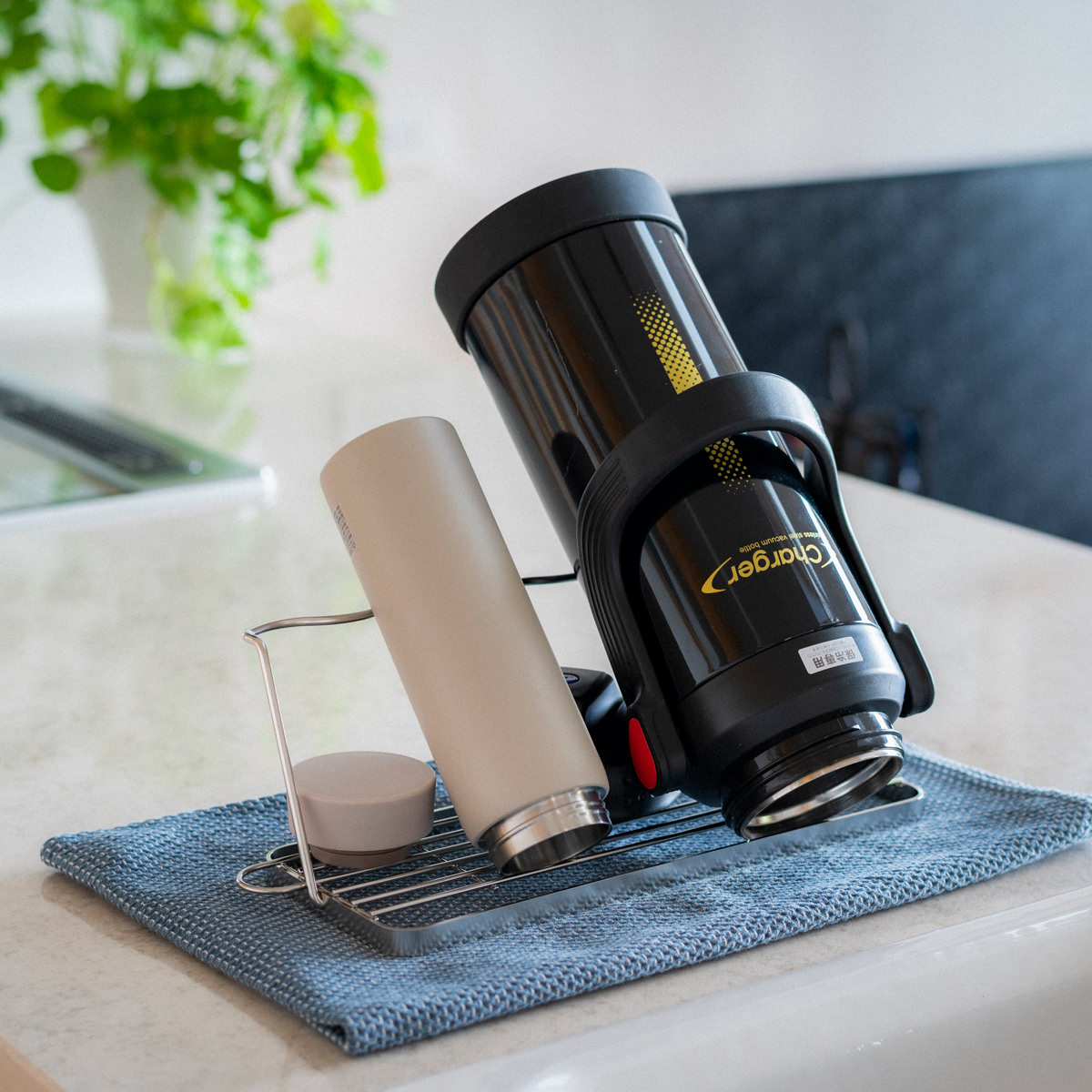 水切りの際は吸水タオルや吸水マットなどを下に敷いてお使いください。底面は高さのあるフレームのため、下に敷いた吸水タオルに水筒やボトルが触れず、乾きも早くて衛生的です。