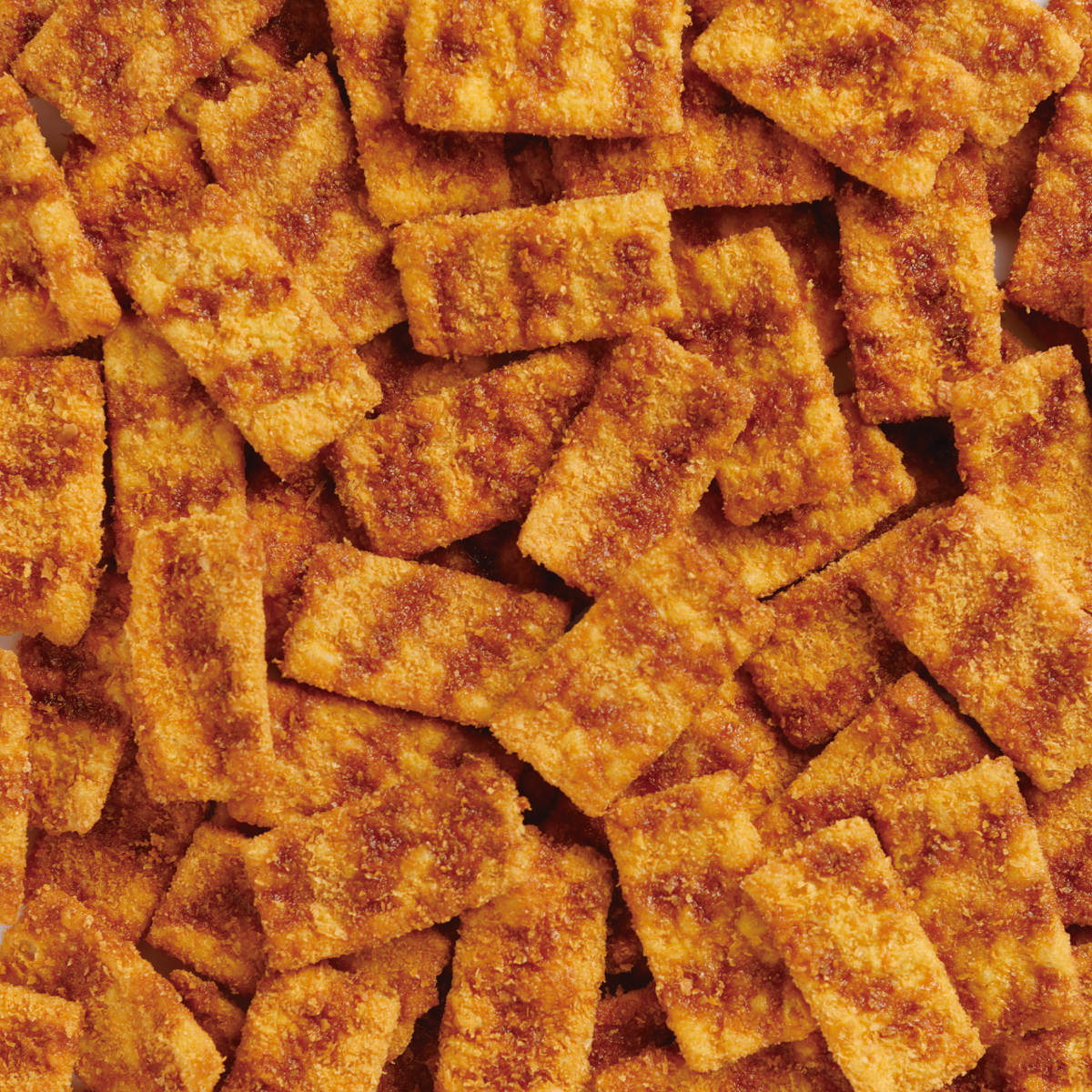●原材料:植物油(国内製造)、パン粉、小麦粉、濃厚ソース、魚肉シート(魚肉すり身、全卵、植物性たん白、でん粉、植物油、食塩、香辛料)、でん粉、香辛料、卵白、たん白加水分解物、植物性たん白、食塩/ソルビトール、グリセリン、加工でん粉、調味料(アミノ酸等)、トレハロース、膨張剤、着色料(カラメル、カロチノイド)、増粘剤(加工でん粉、タマリンド)、甘味料(カンゾウ)、(一部に小麦・卵・大豆・鶏肉・豚肉・もも・りんごを含む)、添付かつお節(かつおのふし(国内製造))