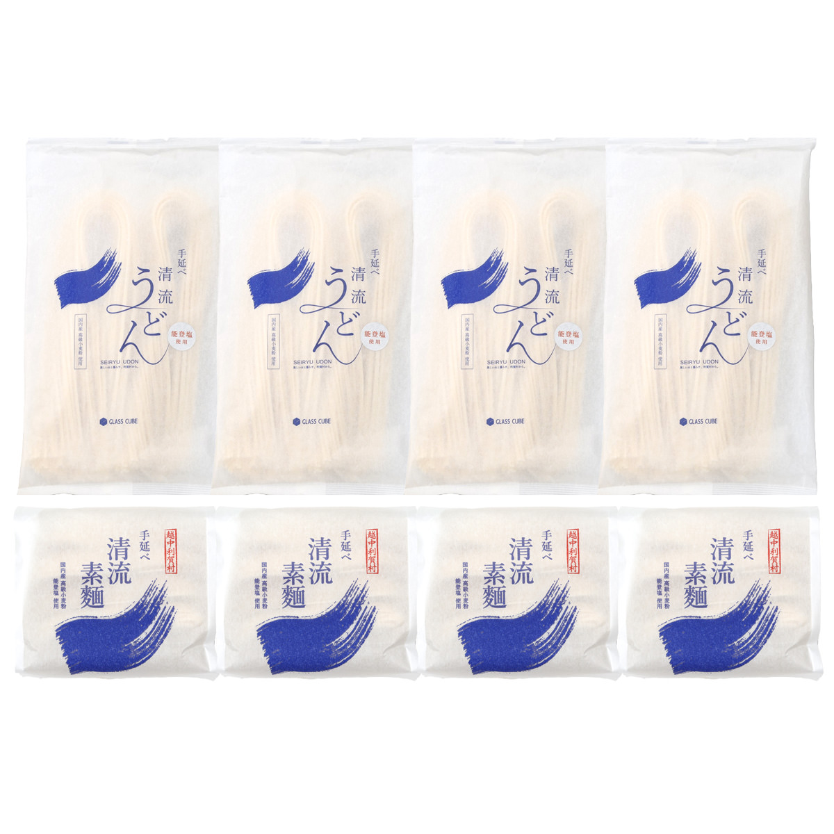 ●数量・内容:手延べ清流素麺、手延べ清流うどん 各180g×4