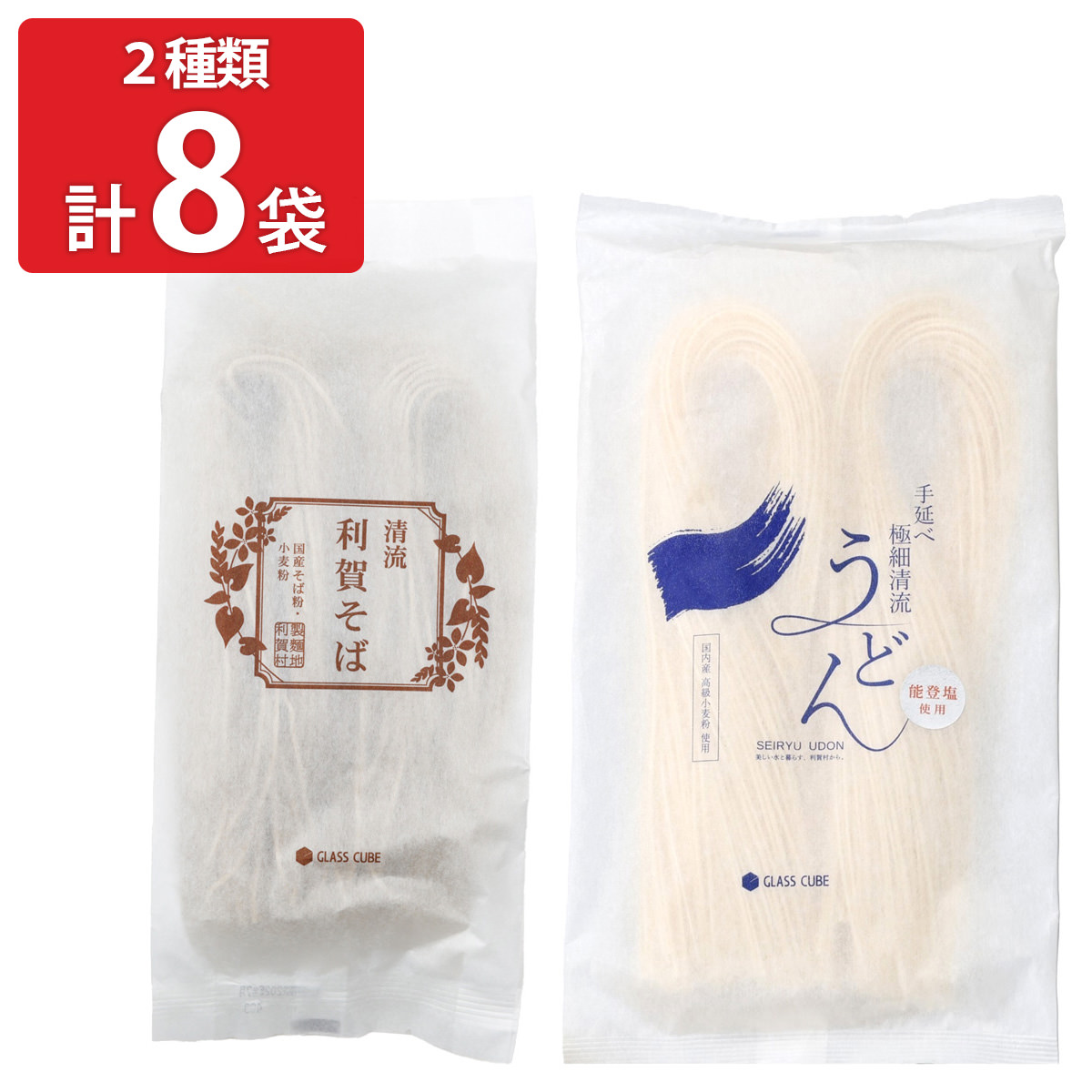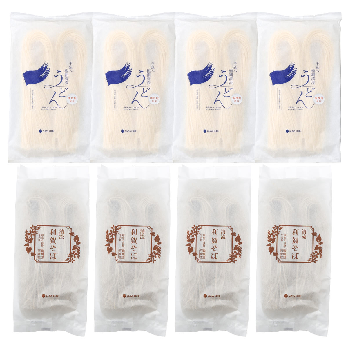 ●数量・内容:手延べ極細清流うどん、清流利賀そば 各180g×4