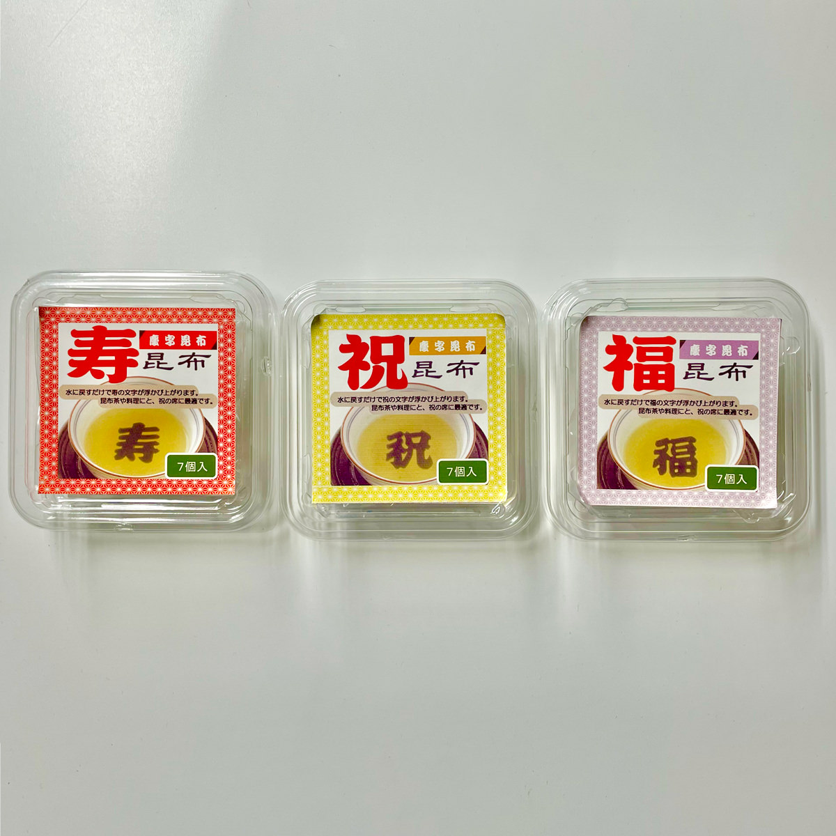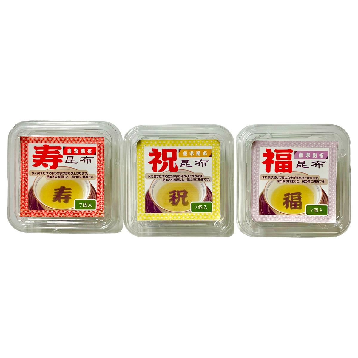 ●数量・内容:寿昆布、祝昆布、福昆布 各7個入