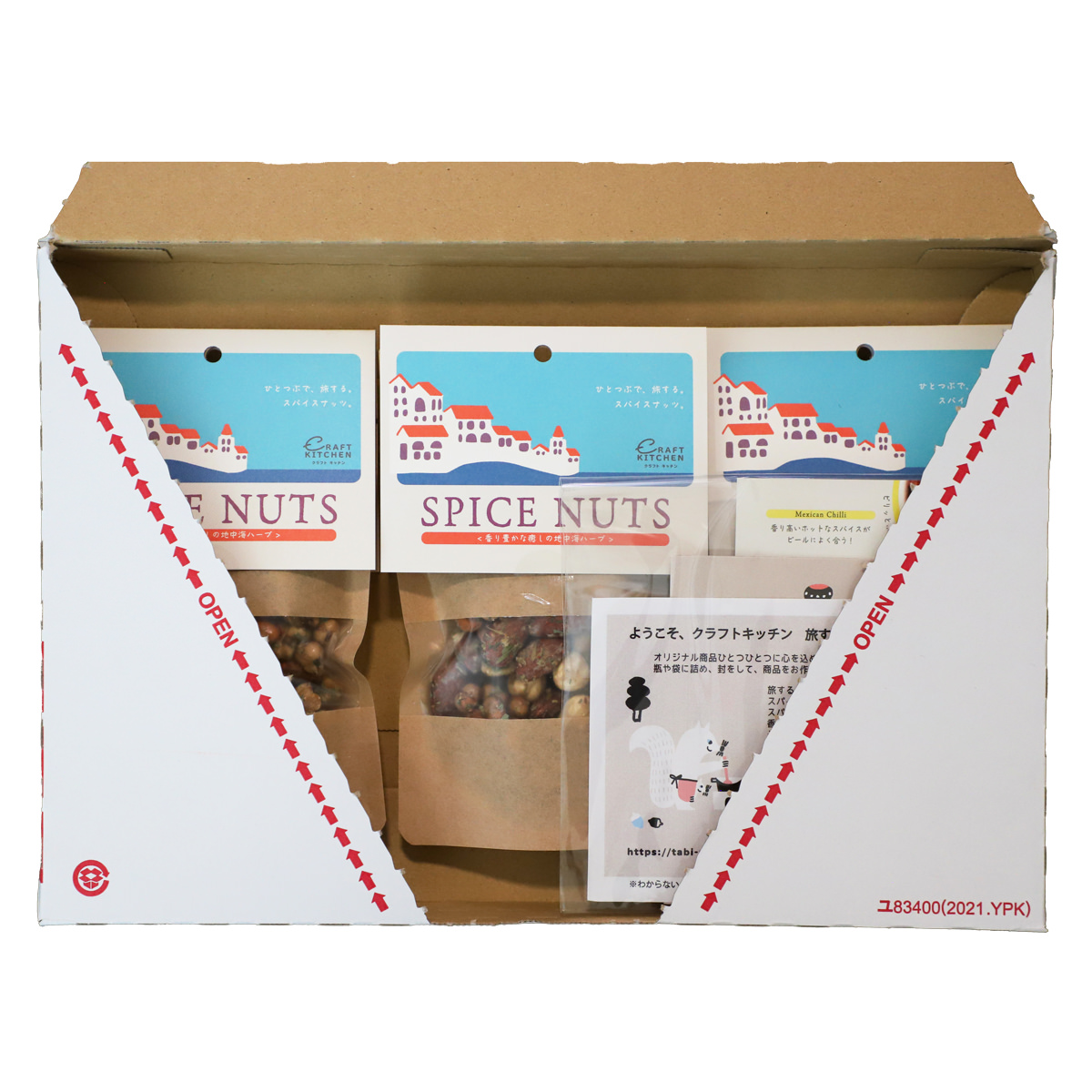 「旅するスパイス スパイスナッツ 地中海ハーブ味」は、スパイス専門店ならではのスパイス使いで風味づけした、贅沢な手作りミックスナッツです。旅するスパイス(R)で好評の「地中海ハーブミックス」に、ほのかにラベンダーやピンクペッパー等を加え、個性ある爽やかな風味に仕上げました。北海道産大豆、てんさい糖など、北海道ならではの素材も使った魅力的なミックスナッツです。