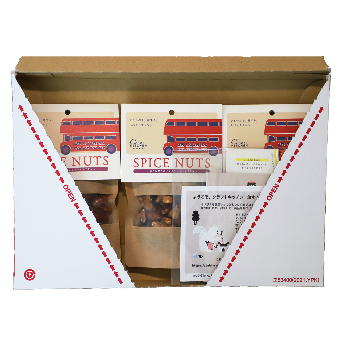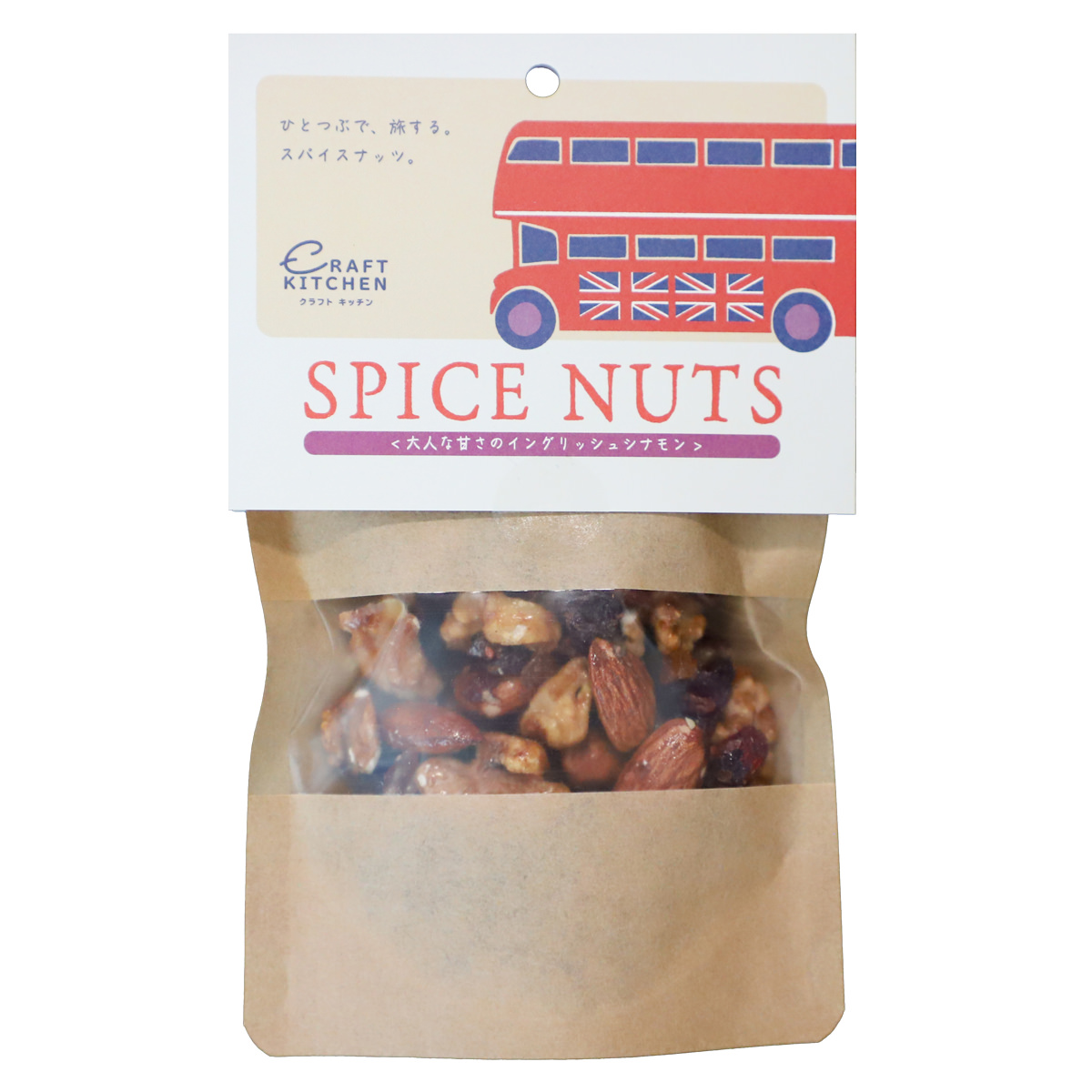 「旅するスパイス スパイスナッツ イングリッシュシナモン味」は、スパイス専門店ならではのスパイス使いで風味づけした、贅沢な手作りミックスナッツです。旅するスパイス(R)で好評の「イングランド風シナモンブレンド」に、5種類のドライフルーツ、カカオニブ、ラム酒等を加え、贅沢な大人のデザートナッツに仕上げました。北海道産小豆、そば蜂蜜、てんさい糖など、北海道ならではの素材も使用した魅力的なミックスナッツです。