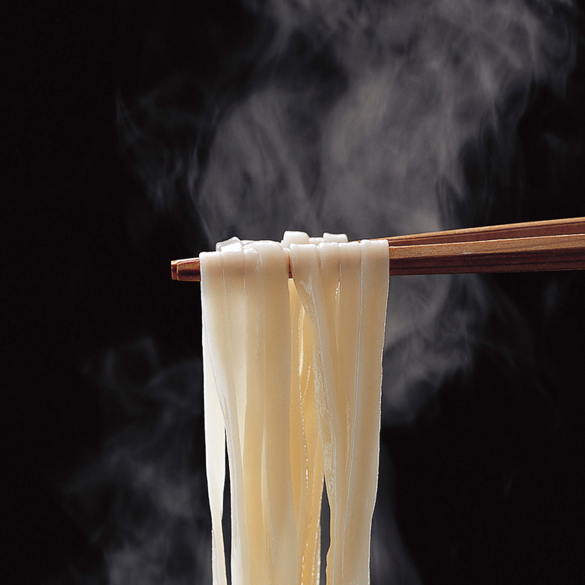 お召し上がりの際は、大きめの鍋にたっぷりと湯を沸かし(100gに対して1リットル位)、充分沸騰したら本品をさばきながら入れ、ハシで時々かきまわして3~4分茹でてください。アワが出て煮こぼれる際には少量の水を加えます(熱湯にご注意ください)。うどんが乳白透明になりましたらザルにあげ、冷水で充分に洗い、水を切ります(茹ですぎにご注意ください)。季節に応じて、冷やしたタレ、または温めたタレで召し上がると風味が格別です。タレの素はかつお節、焼干を用いてつくり、なめこ等を入れるのがおすすめです。