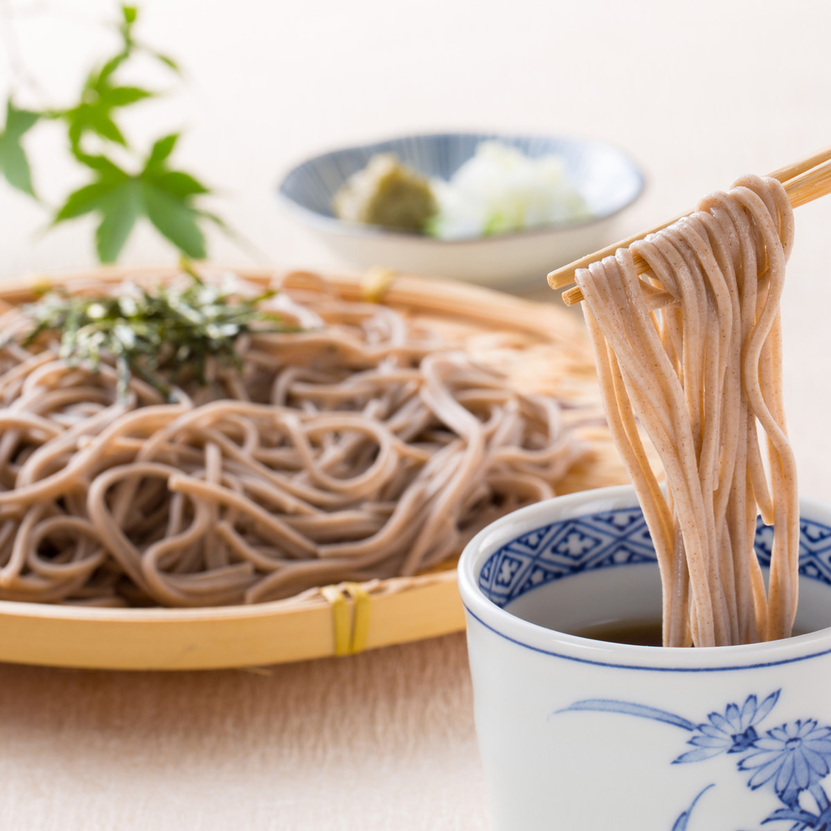 お召し上がりの際は、大きめの鍋にたっぷりと湯を沸かし(100gに対して1リットル位)、充分沸騰したら麺をさばきながら入れ、ハシで時々かきまわして、うどんは3~4分、そばは5~6分茹でてください。アワが出て煮こぼれる際には少量の水を加えます。茹であがったらザルにあげ、冷水で充分に洗い、水を切ります。